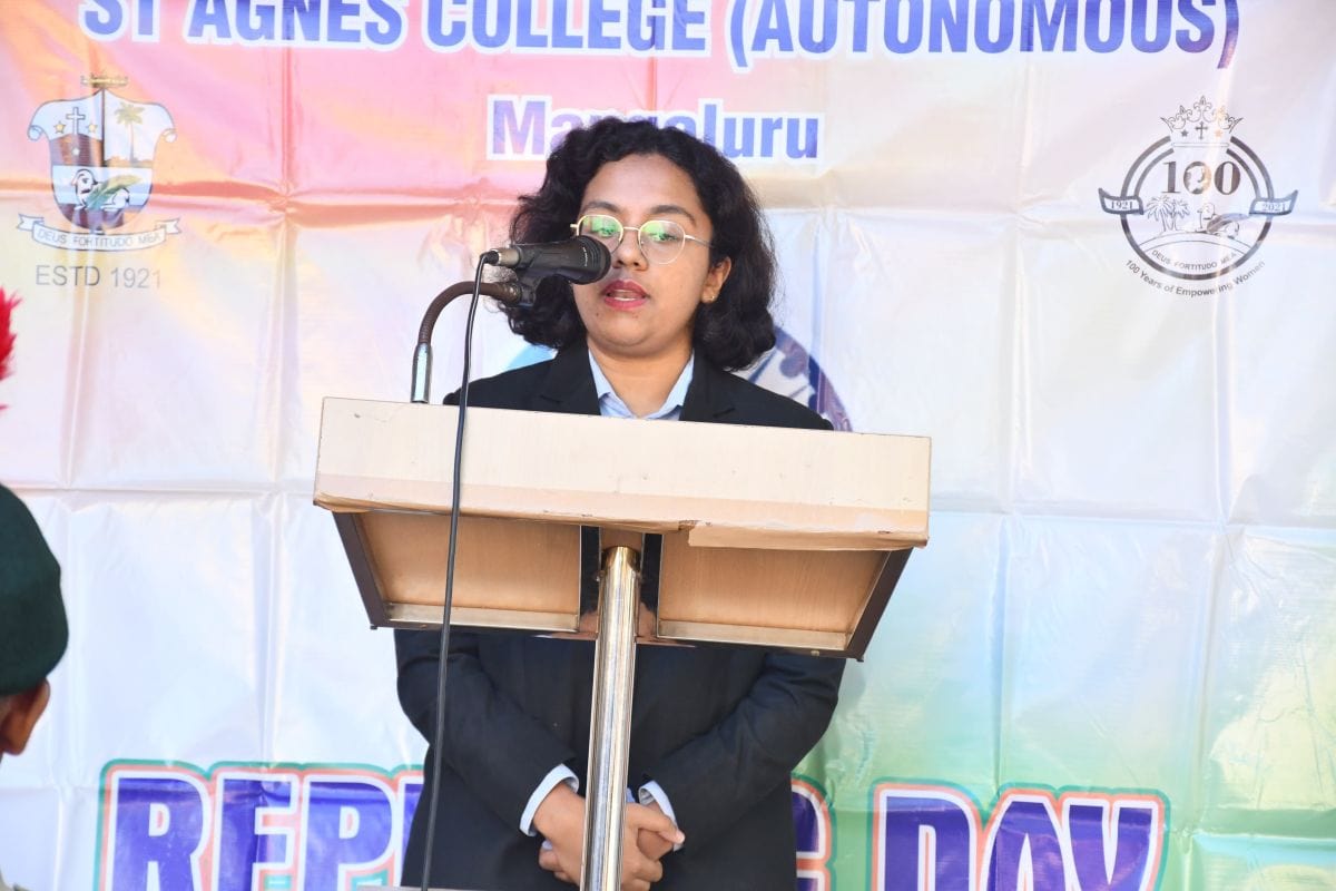 The programme commenced with a prayer song by NCC cadets. Ms.Thanmayee, II BA welcomed the gathering. The students of St. Agnes Kannada Primary School captivated the audience with a mesmerizing patriotic dance performance. The programme concluded with expressions of gratitude and on a sweet note and completed with distribution of sweets to the gathering.