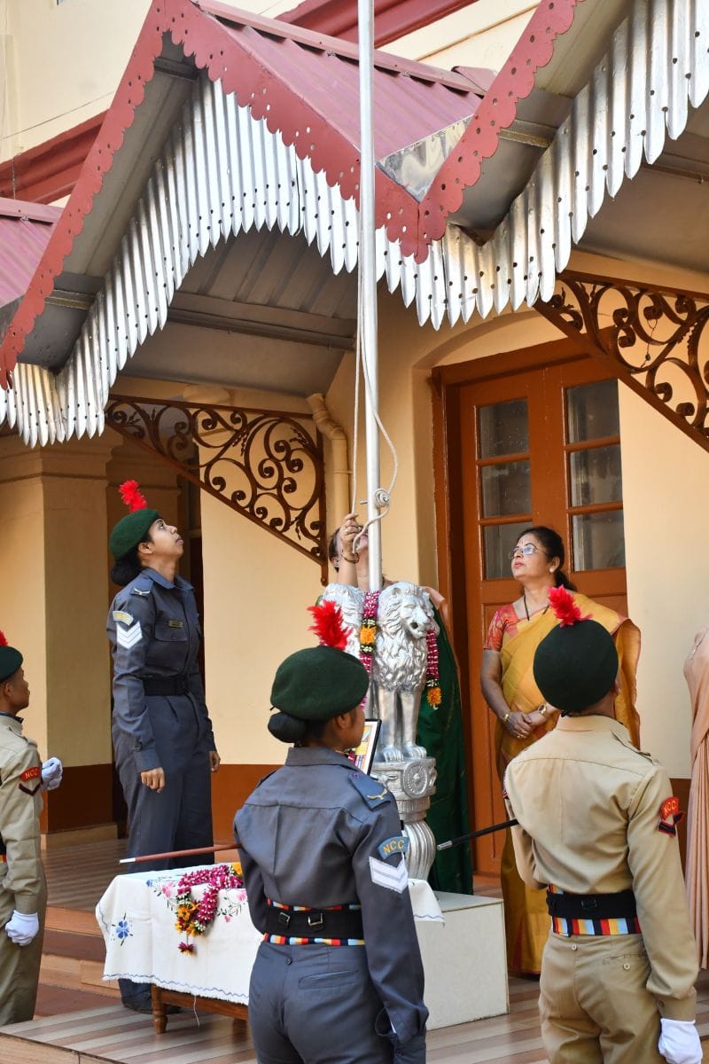 She encouraged the importance of protection of democracy and enjoyment of freedom and rights by all citizens. India being placed on the global map today is indeed a matter of pride as it is so rich in culture and traditions, worth emulating and spoke about the three key values one should inculcate within oneself. Those are the values of commitment, loyalty, and discipline, starting from home and extending to institutions and workplace and said that patriotism is carrying one’s country in the heart, not just celebrating commemorative days.