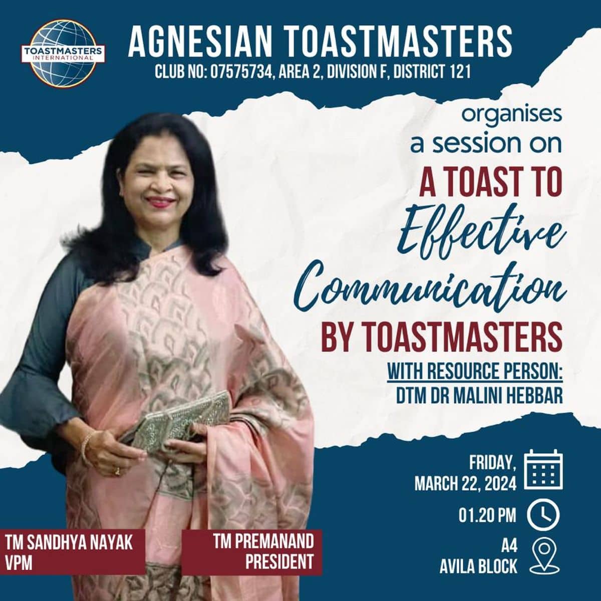 She presented the mission of Toastmasters International which completed a hundred years this year.
