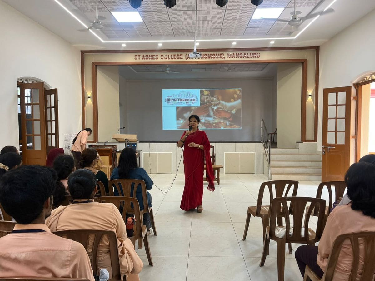 She urged students to make use of the opportunity provided by the college as it was indeed a blessing to have a Toastmasters Club on campus. She also spoke about how most companies seek graduates who have been Toastmasters as they have already been trained in soft skills. This was a membership drive conducted by the Vice president Membership Toastmaster Sandhya Nayak and the President of the club Toastmaster Dr Premanand. This session was conducted for the students of I & II B.A. English Major. In all there were 50 plus students and four staff members from the Department of English were also present. It was a fruitful interactive session.