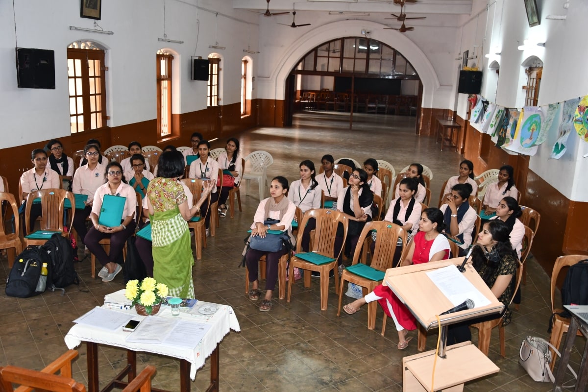 The workshop was conducted in six interactive sessions touching upon the topics : ‘Communication skills, coping up with challenges’ by Mrs Patsy Lobo; ‘Demo of belly dance with yoga and health fitness tips and female hygiene’ by Ms Sharlaine Sequiera;’ How to build self confidence’ by Mrs Patsy Lobo; ‘ Self esteem by self motivation, personal analysis, self reflections, artificial intelligence & robotics and positive feelings’ by Dr Derek Lobo and ‘ Assertiveness, leadership qualities’ by Mrs Sunitha Menezes.
