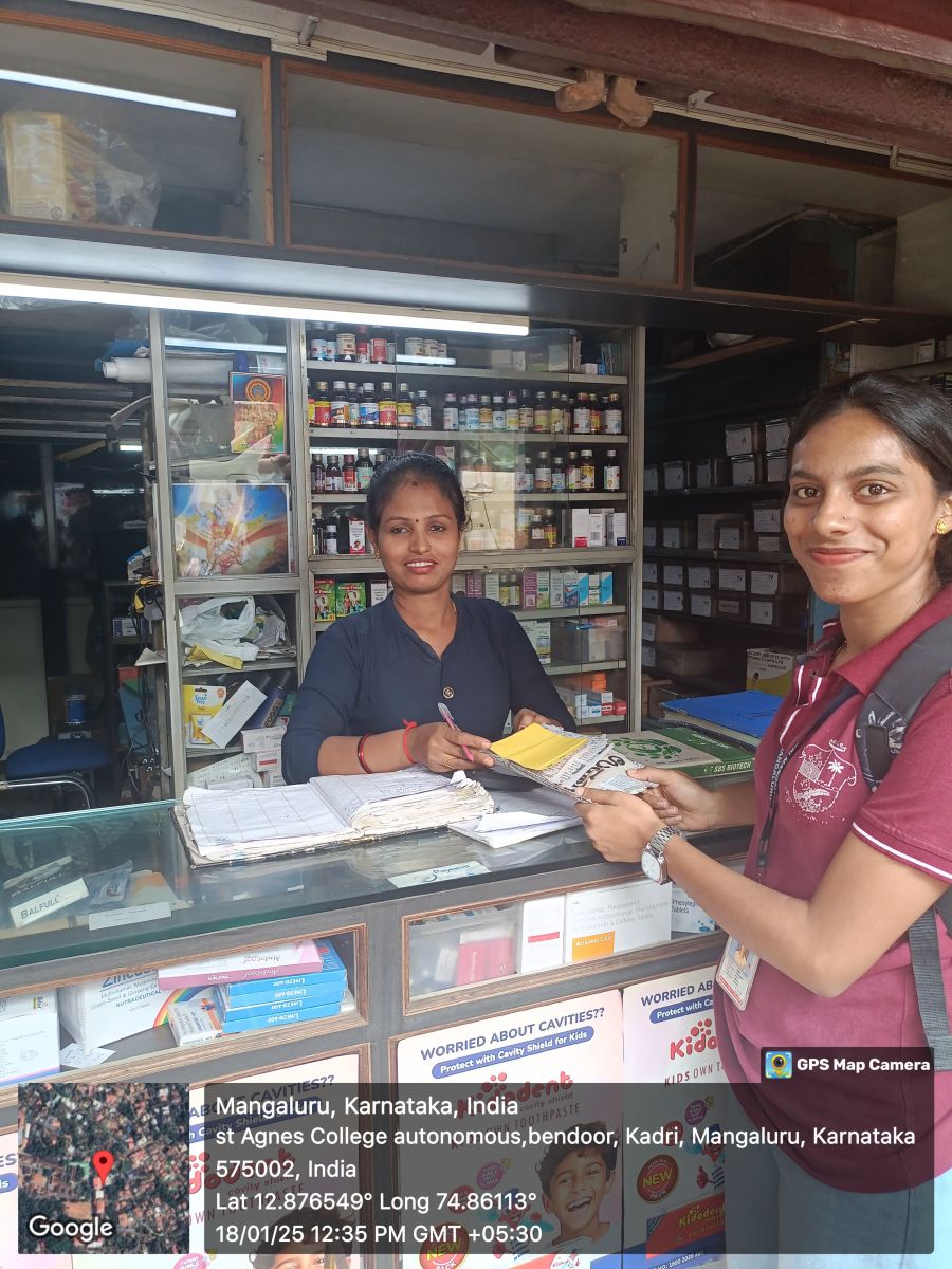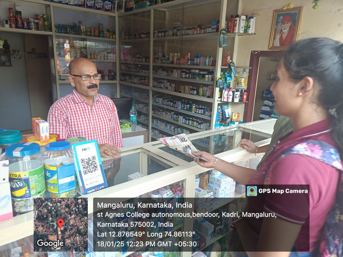 On 18th January 2025, the ATC students of Final year BBA were on a drive to distribute 126 paper bags prepared by them to different medical stores. The students along with their staff in charge Mrs Seemanthini Fernandes, went to 6 different medical stores and distributed a set of 21 paper bags equally. The students were divided into 2 groups where one team went towards Kadri where they distributed paper bags to 4 medical stores and the group went towards Shivbagh where they distributed paper bags to 2 medical stores. The distribution drive began at 11:40 am and ended at 1.00 pm. Everyone had helped in preparing the paper bags and also in distribution. Distributing paper bags at medical stores is a crucial step towards promoting environmental sustainability by reducing the use of plastic, which contributes to pollution and takes longer to decompose. It encourages eco-conscious practices by raising awareness about the benefits of biodegradable alternatives. Medical stores that adopt paper bags enhance their reputation as responsible businesses, and the initiative fosters a sense of community involvement among students and local businesses. Additionally, paper bags are safer for carrying medical supplies, reducing the risk of harmful chemicals. For the students, the drive provided valuable experience in social responsibility, environmental advocacy, and teamwork, reinforcing the importance of sustainable practices. The students were very interested and took active part in this drive.