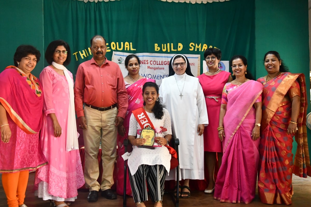 Ms.Ladleen Janisha Monteiro, III B.Com, Student President for 2018-19, was conferred the Agnesian Outstanding Leader of the Year Award. The Award was instituted by Ms.Carol Pais Coelho in honour and memory of her parents, Mr. Philip and Mariette Pais.