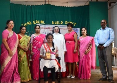 The Agnesian Scholar of the Year Award went to Ms.Tania Leena D’Souza, III B.Com.The Award has been instituted by Dr. Meera Aranha.