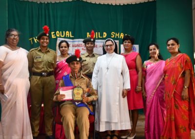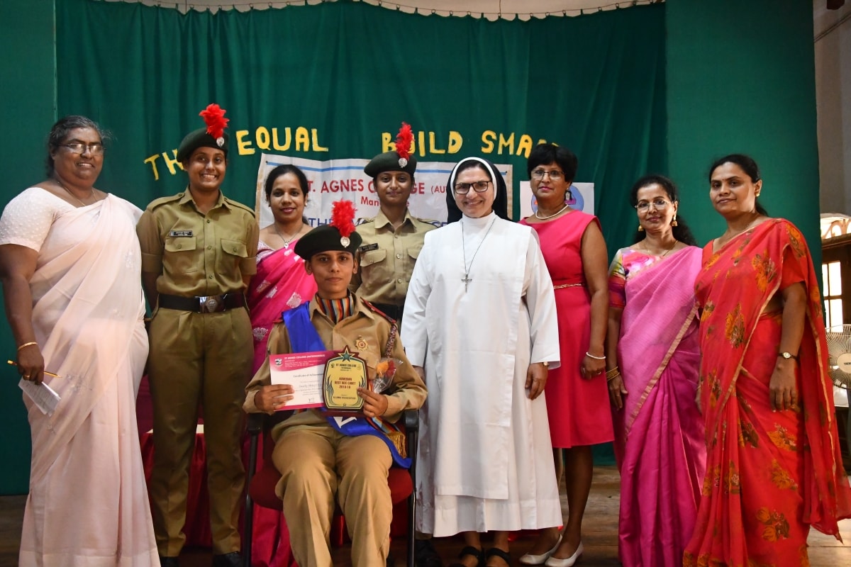 Agnesian award for the best NCC Cadet was awarded to Ms.Swathy Shetty, III B.Sc. This award has been sponsored by Mrs.Saramma Jayaraj.