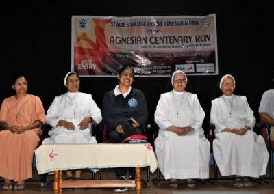 Ms Rochelle D’silva, Wing Commander Indian Air Force was the Chief Guest of the event. Sr Dr M Jeswina AC, Principal of St Agnes Degree College, Sr Maria Roopa AC, Superior of St Agnes Institutions, Ms. Geanette D Souza, Alumni President of St Agnes College, Sr Norine, Principal of St Agnes PU College, Sr Carmel Rita AC, Administrator of St Agnes College, Ms Anna Crasta, PG President of St Agnes College, Ms. Jerusha, UG president of St Agnes College and Mr. Ronald D Souza, PTA President, St Agnes College were the dignitaries present on the dias.