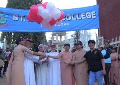 Sr Dr Jeswina AC, Sr. Dr Vanessa AC, Ms Rochelle D Silva and Mrs Geanette D Souza released the balloons and declared the event open. Ms Rochelle D Silva flagged off the cyclothon, Sr Dr Jeswina AC flagged off the Marathon and Ms Geanette D Souza flagged off the walkathon. The event was sponsored by TVS motors Mangalore, KMC Hospital Mangalore and Dr Austin D’souza Prabhu from Chicago, USA.