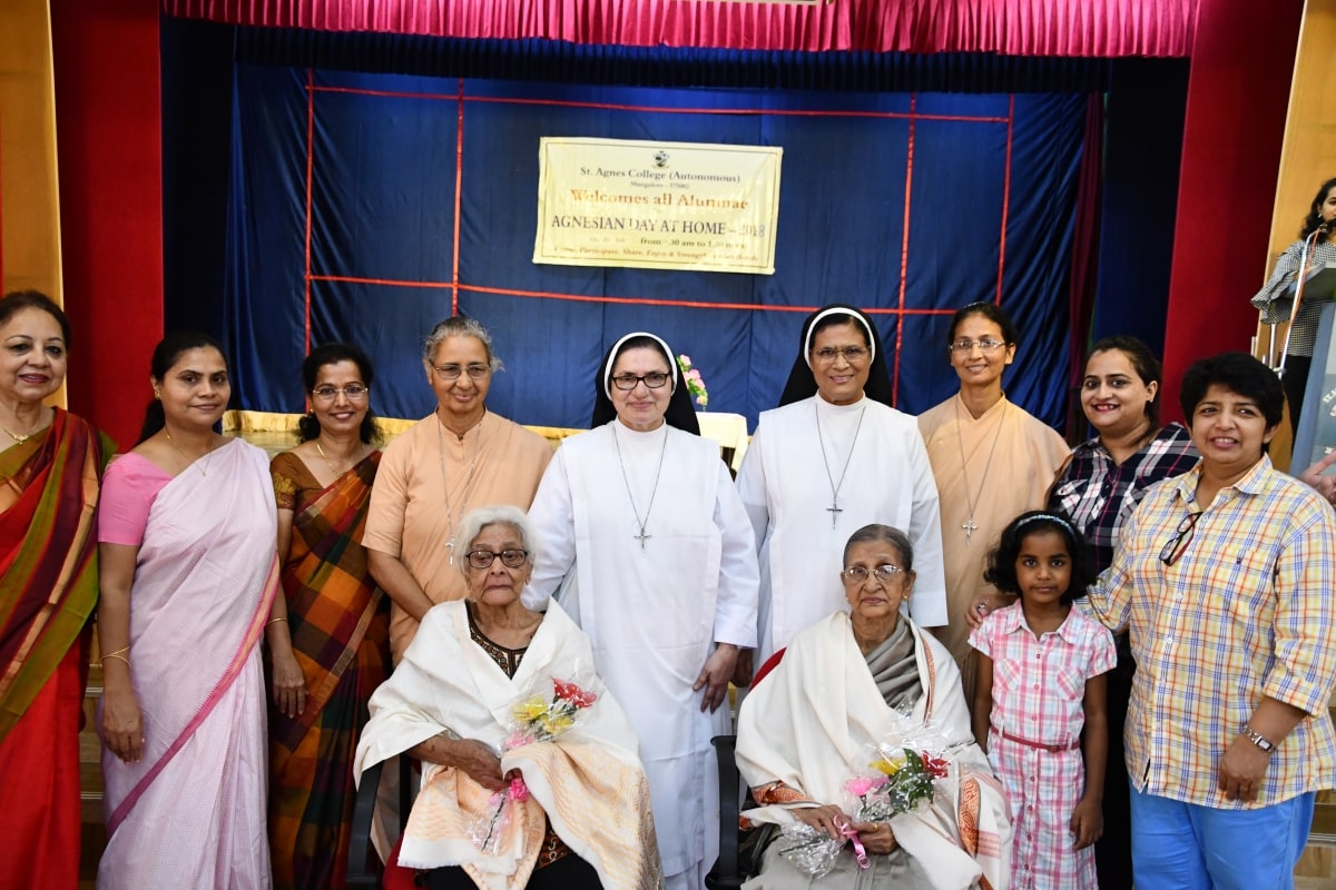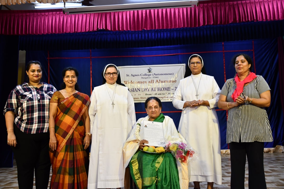 Agnesians across the world gather in their respective chapters and the Mangalore chapter which is home base gathered to meet at their Alma Mater on 29 July 2018.Sr Dr Jeswina, A.C, president of the Alumni Association welcomed the gathering.Dr Malathi Hegde was the guest of honor for the Agnesian Day at Home 2018. Dr Malathi was honoured for her dedicated and selfless service in the field of medical and health care.The presence of three Alumni from yester years was a phenomenal. Lucy Mascarenhas, a home maker whose children, grandchildren and new family are all Agnesians was honoured by the Committee members. Ivy Mathais, the oldest living Agnesian was honoured by committee members at her residence later in the noon. Ms Mathais has been an integral part of St Agnes Institutions. The Agnesian Alumni are gearing up for the centenary celebrations. Meera Aranha, convener of the centenary committee rendered words of wisdom during the occasion. She encouraged the Alumni to partake in their own way towards the centenary year 2020-2021.Rajni Patrao compered the formal proceeding and thereafter Ramona Mathais took over as the host for the day. Entertaining group games were conducted by Suchitha Rai and Ramona. Aftera sumptuous lunch a game of housie was conducted. The Ex-Agnesian Dance Crew led by Sanchia Nazareth included women from various walks of life tapping their feet to the rhythm of the music. This year with the theme “checkered patterns” brought out fashion styles like none other. From sarees to salwar suits, checkered shirts and much more, the Agnesian Alumni were a happy bunch of stylish people. From reliving memories and making more memories to cherish with photos, song and dance and lots of talk, the Agnesians celebrated their day at Home with joy.