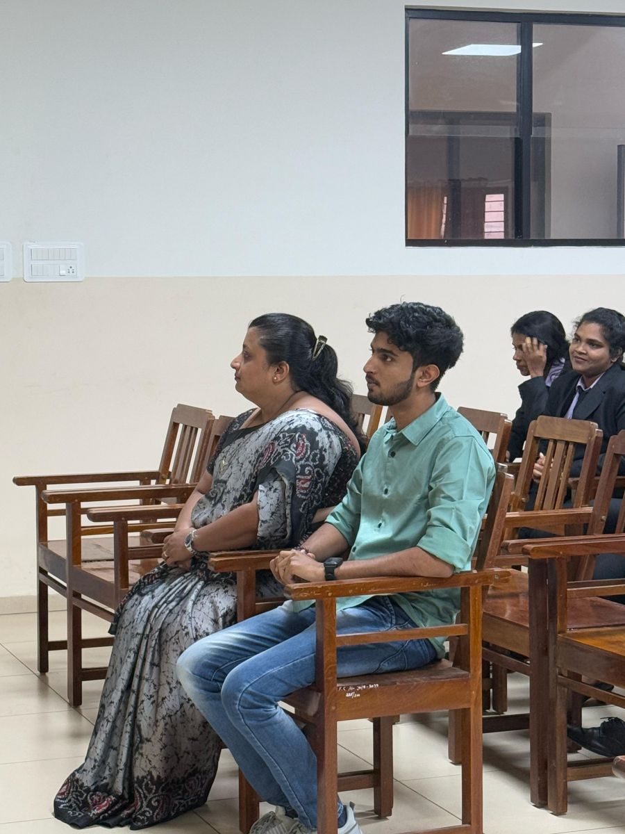 The session aimed to provide students with guidance on academic growth, career planning, and corporate ethics. Mr. Shamith began by reflecting on his own student journey, sharing how he balanced academics, extracurricular activities, and personal development. He emphasized the importance of learning beyond rote memorization and introduced a real-world case study that allowed students to apply theoretical knowledge in a practical context—highlighting the value of critical thinking and problem-solving.