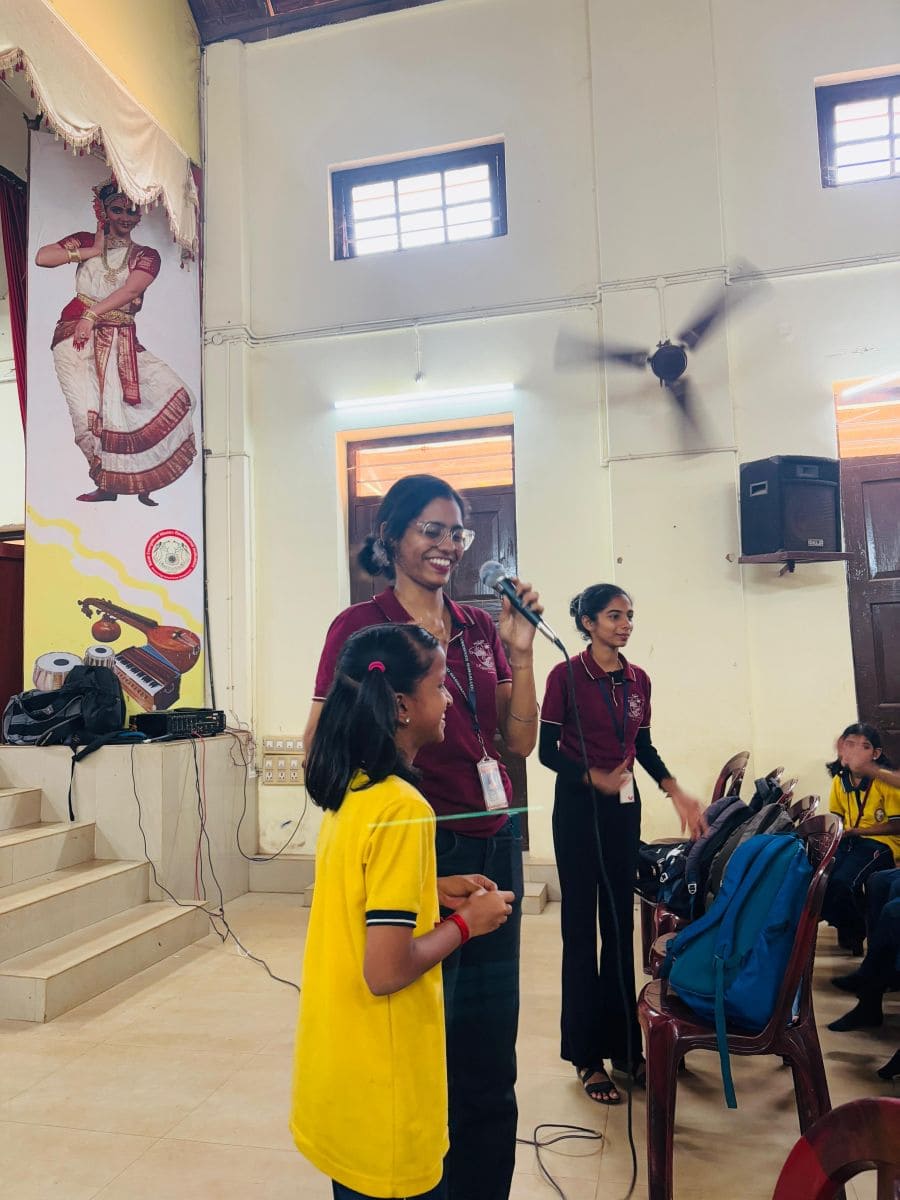 An insightful session on the benefits and potential dangers of mobile phone misuse was led by Sheethal and Hriswi. They emphasized the importance of setting boundaries when using technology. The session was highly interactive, with students actively participating and sharing their thoughts.