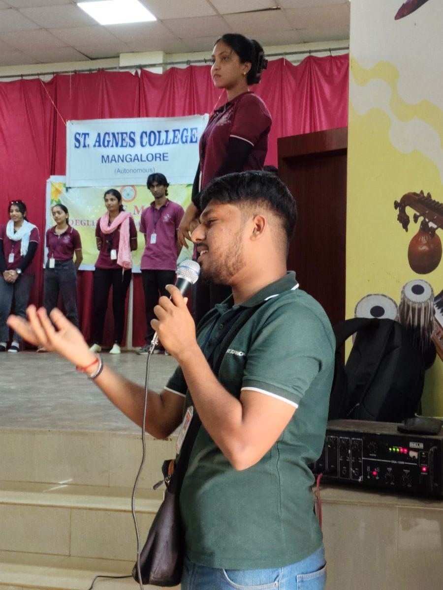 Vasishta Rai, Vice President of the BCA, energized the crowd with an interactive and engaging talk, setting the tone for the event. This was followed by a captivating skit presented by the BCA students, which highlighted the pros and cons of smartphones. The skit also provided a comparison between life in the ’90s and the present, before and after the invention of mobile phones. The narration in the skit, in particular, stood out as one of the most engaging aspects of the performance, keeping the audience entertained and captivated.