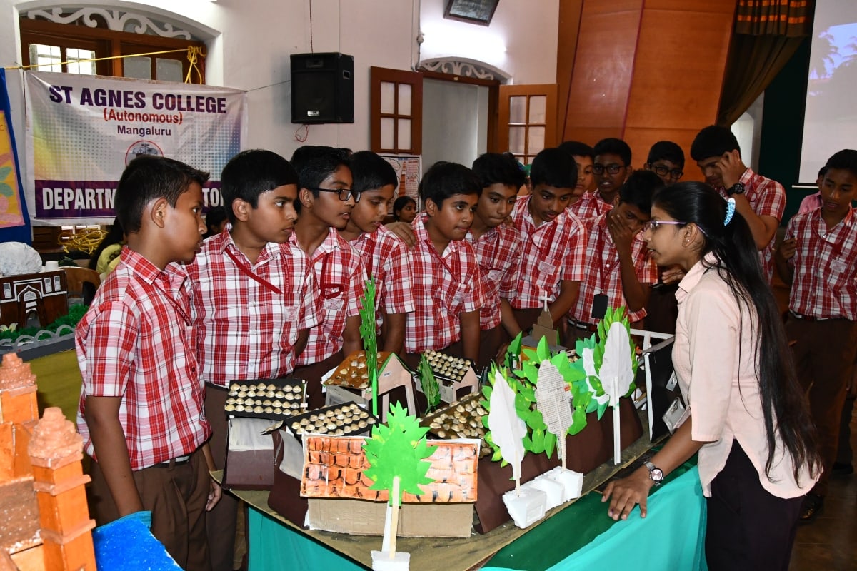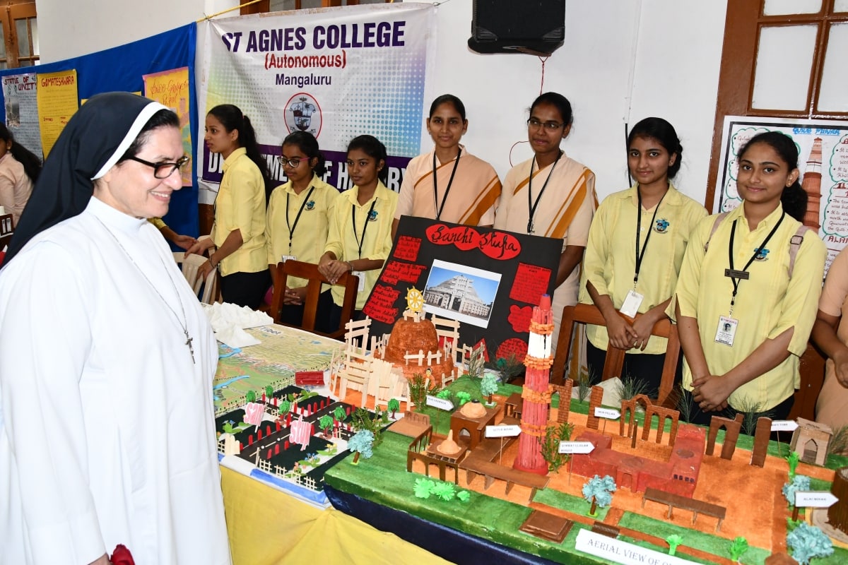 St Agnes College Arts Exhibition 2018-19 was inaugurated by the Principal Sr Dr M. Jeswina A.C. on 17 January 2019.The students from different departments of Arts had prepared various innovative models. The department of Psychology put up exhibits on Physiology, Behaviour and Emotions while the department of OPM and Secretarial Practice presented work life in their models, department of history surprised everyone with the glimpses of middle and modern history of India, department of Journalism presented the scope of mass communication, department of Political Science came up with the evolution of politics and the department of Economics presented the working of the monetary world. The Principal appreciated the perseverance of arts students in putting up this exhibition and congratulated them for the innovative and creative ideas. The neighboring school and PU college students visited and viewed the exhibits and admired the same.