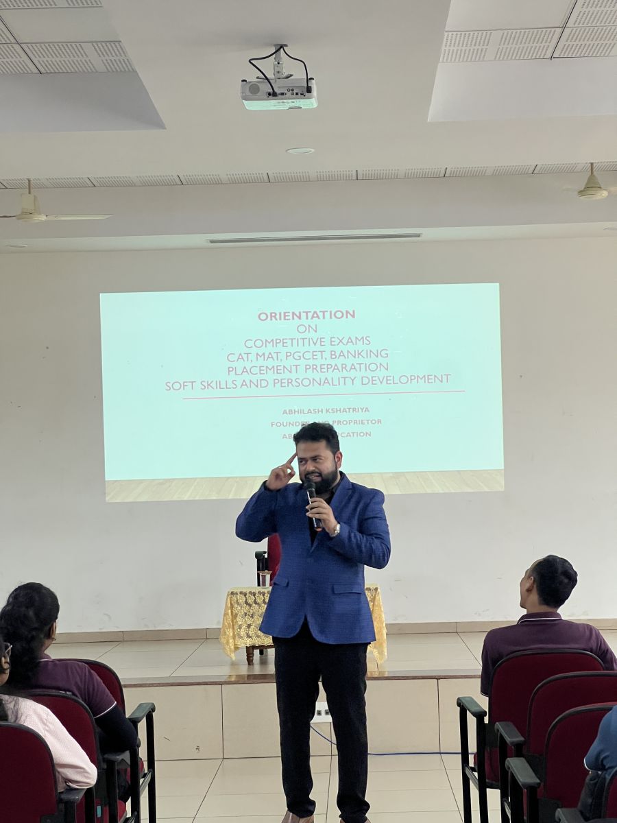 During the session, Mr. Abhilash focused on crucial competitive examinations such as CAT, MAT, PGCET, and various bank exams. He provided a comprehensive overview of the structure and demands of these examinations, offering valuable guidance to aspiring professionals. A significant highlight of the session was his demonstration of tips and tricks to solve common problems encountered in competitive exams. This practical approach empowered students with effective strategies to tackle challenging questions more efficiently and accurately.