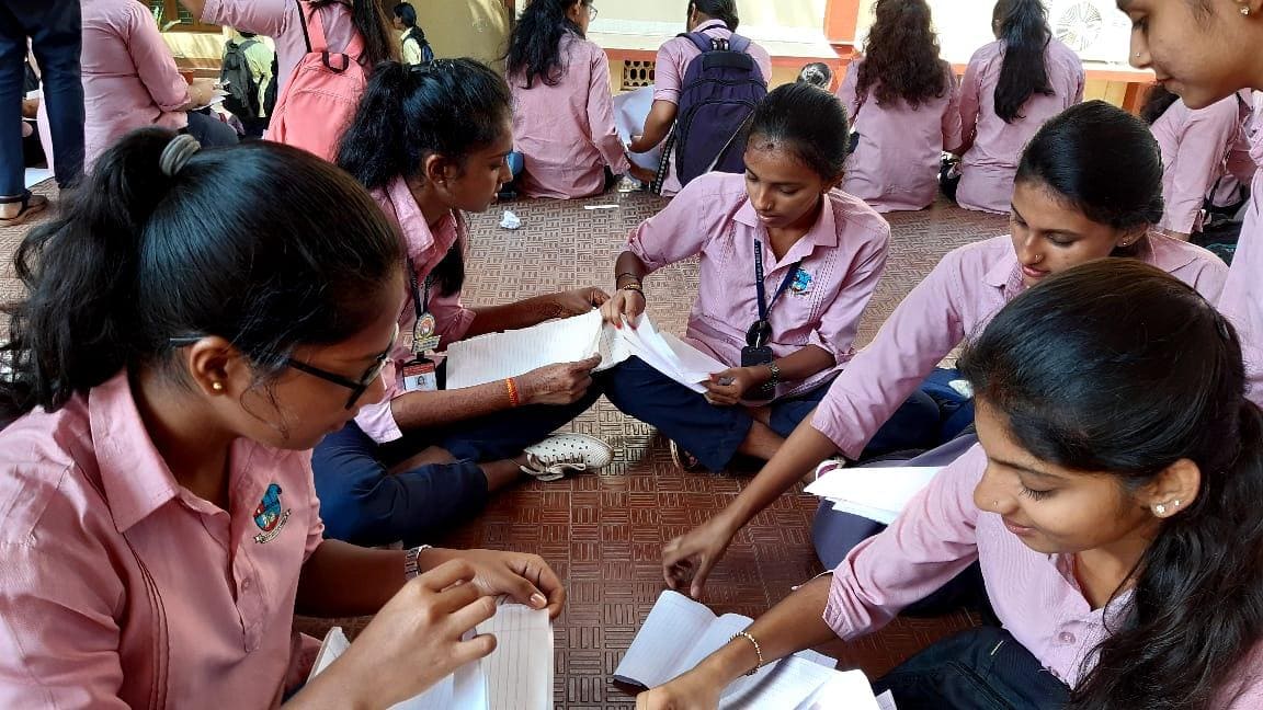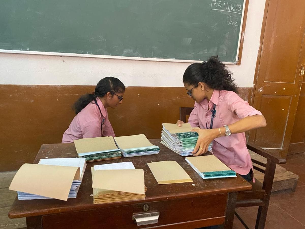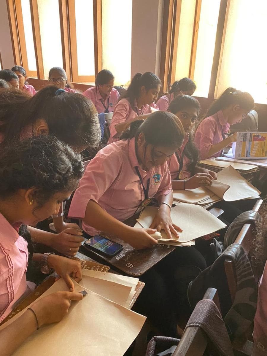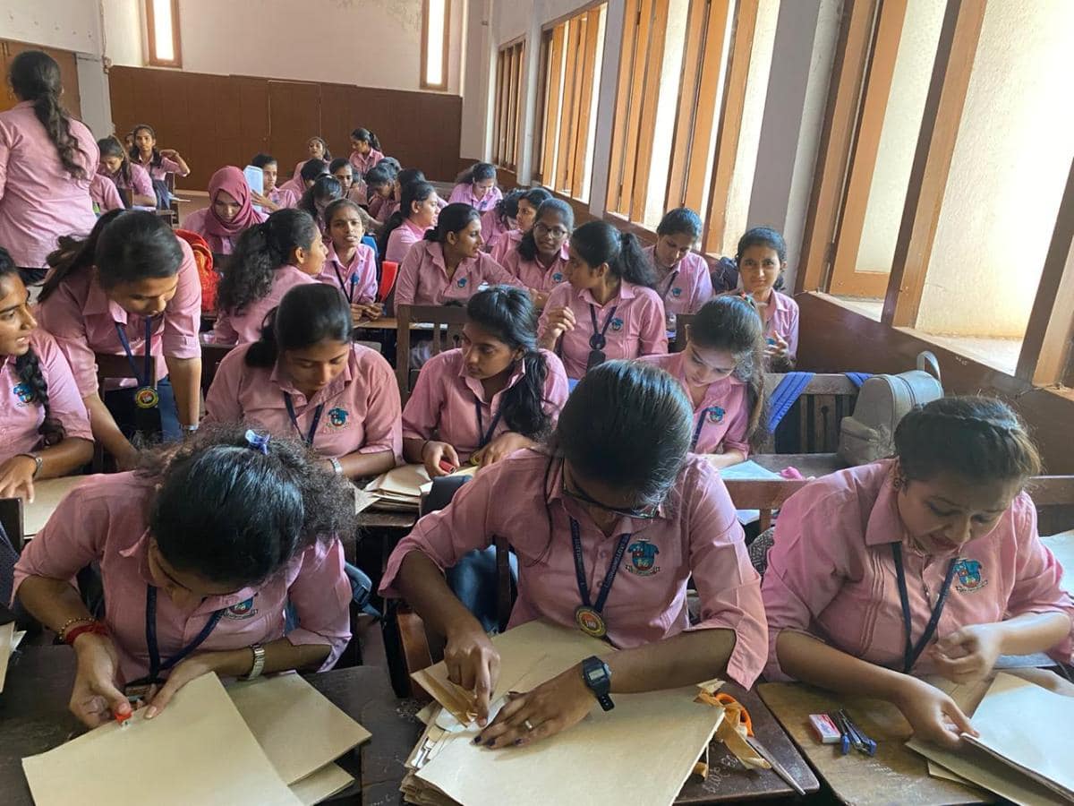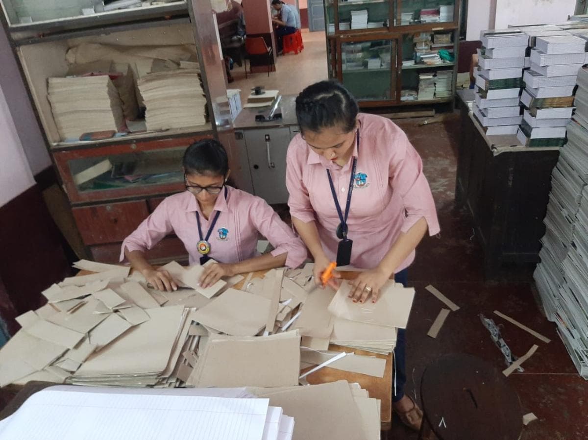 It has been a practice of the commerce department to collect the unused papers from staff and students to make notepads. Using these unused papers, the final year Bcom students made 200 books.