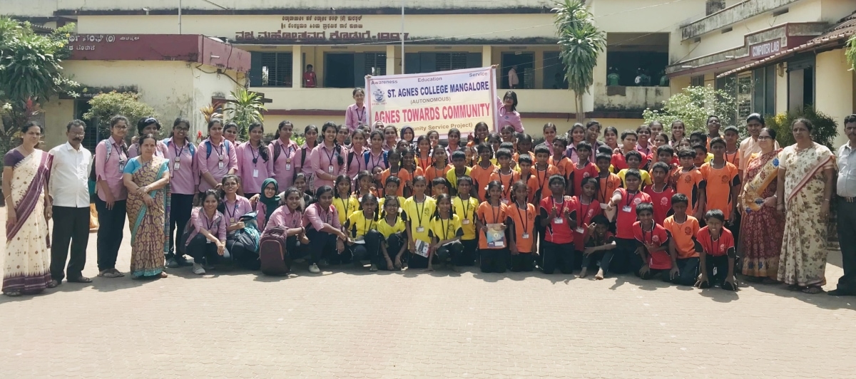 As a part of ‘Agnes towards community’ programme, 36 students of 3rd BSc from the Department of Mathematics of St Agnes College (Autonomous), Mangaluru,under the guidance of Mrs Vidya Saraswathi, Sr Evet Priya and Ms Relisha visited Sri Venkataramana Higher Primary School, Kulai, Mangaluru on February 15, 2020.