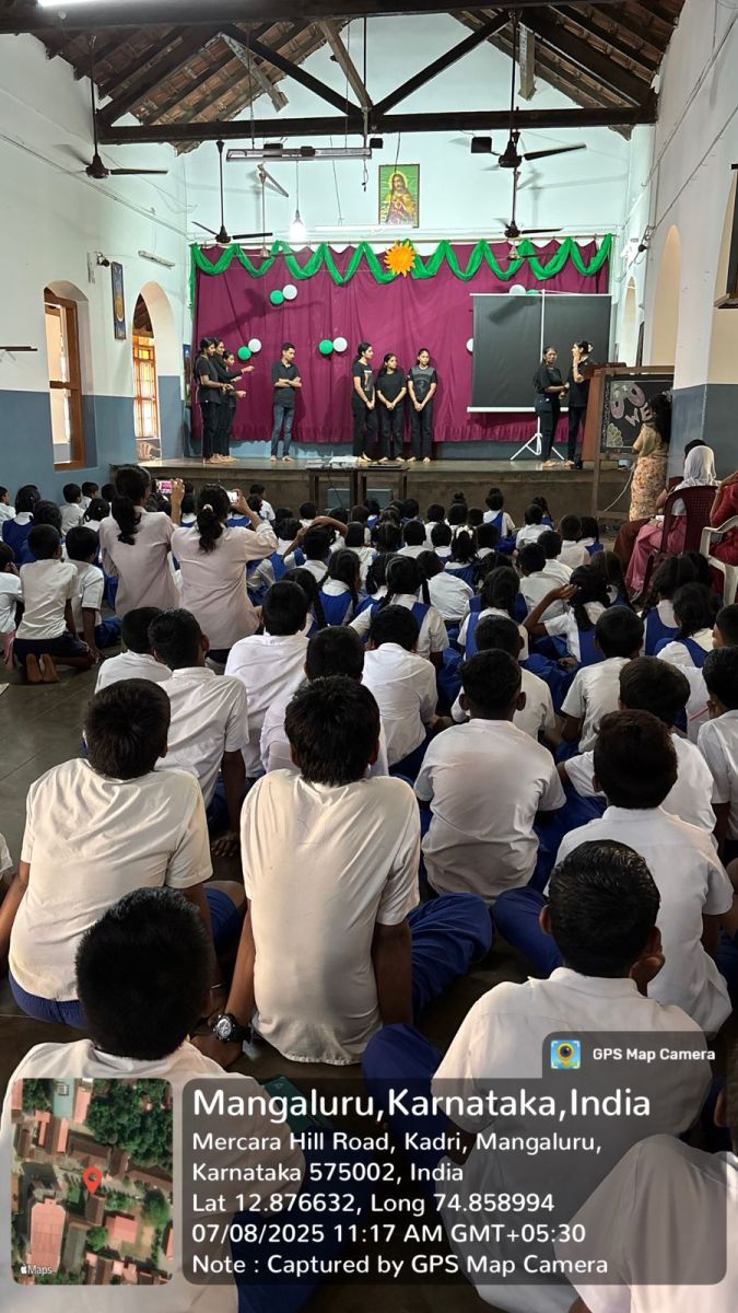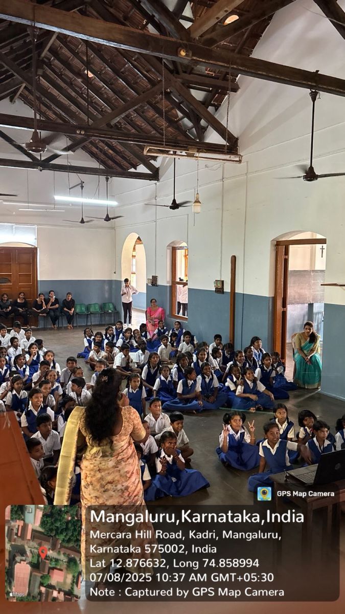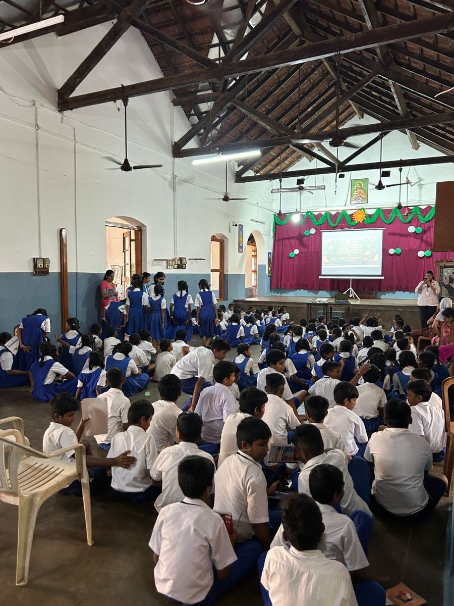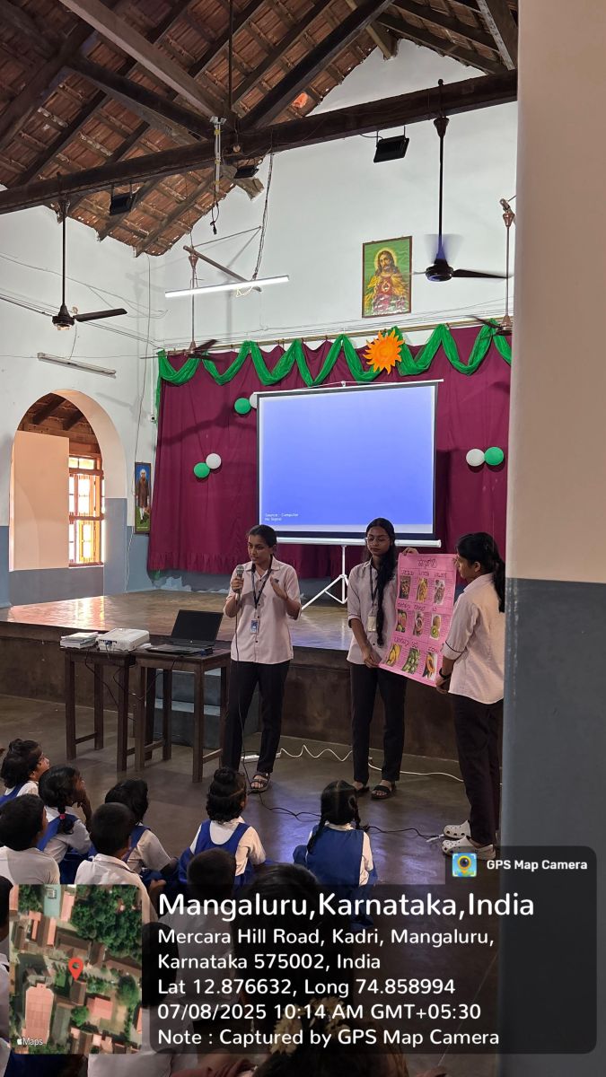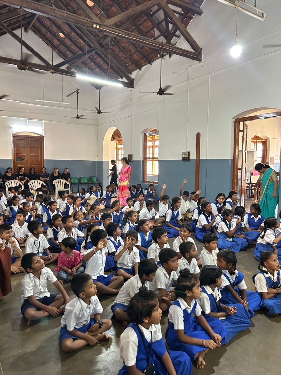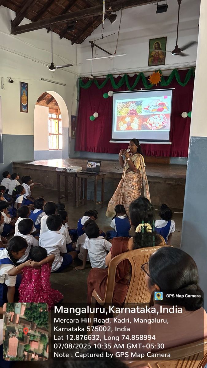 An informative session was conducted by Mrs. Prema, who spoke about the benefits of healthy foods and the importance of avoiding unhealthy choices. The B.Com ACCA students organized creative and interactive games such as “Guess the Fruit and Vegetable by Touch” and an action song based on fruits, which received great enthusiasm from the school children.