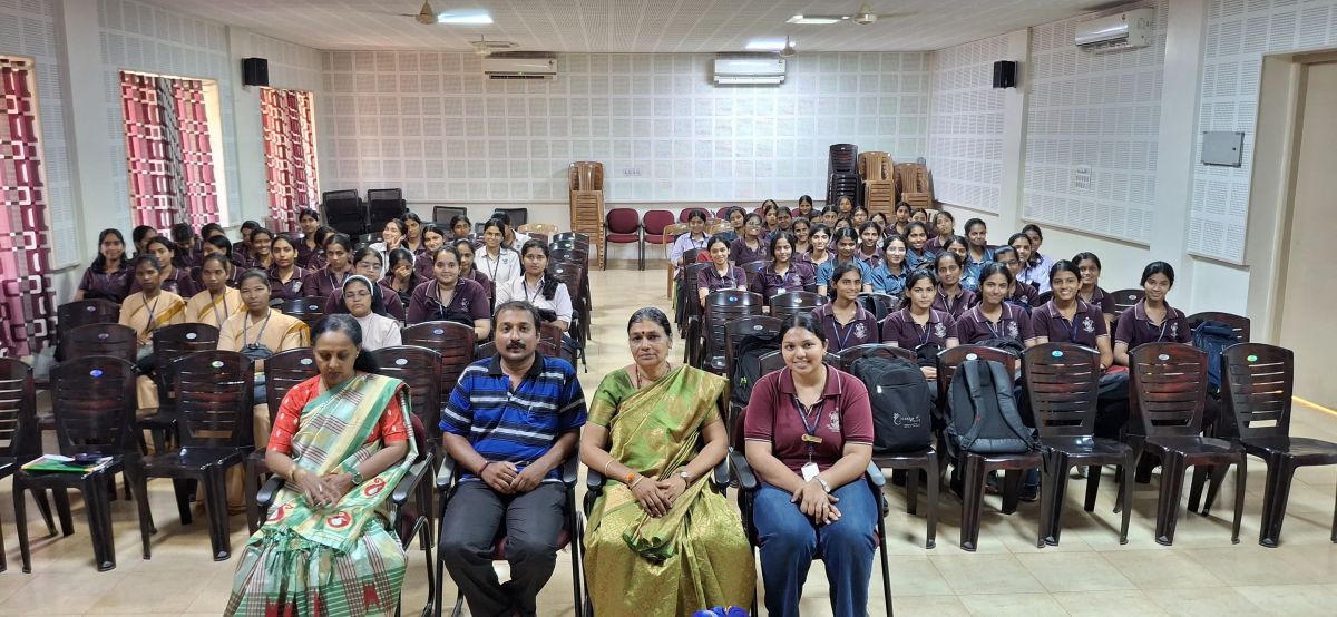 The resource person for the session, Mrs. Amitha Nayak from CareNSafe of India NGO, shared her expertise on cervical cancer and the significance of regular screenings, vaccinations, and lifestyle changes to prevent the disease. She also addressed various myths and misconceptions surrounding cervical cancer, ensuring that students gained accurate and reliable information. An important highlight of the event was the demonstration of eco-friendly sanitary pad preparation, which provided students with an alternative approach to sustainable menstrual hygiene.