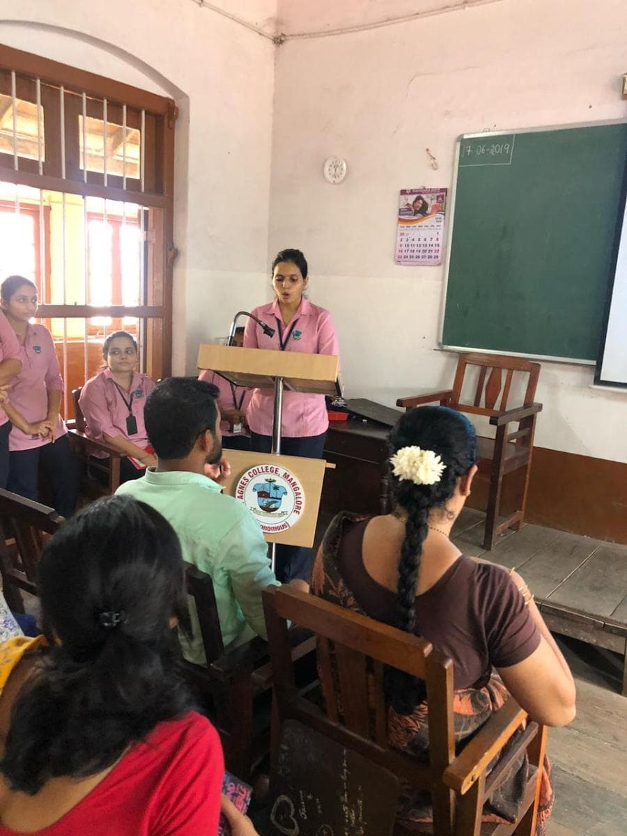Arts Departments of St Agnes College organized a fresher’s day for all the I B.A. students on 17 June 2019 at 1.30 p.m. in Avila Block, Room No 10. The programme began with a prayer led by the final year students. Ms. Maria Antony welcomed the gathering, Ms. Sarah Monis, Vice President of Arts introduced the arts faculty and the activities organised during the academic year 2018-19 through a PPT. This was followed by briefing the choice based syllabus and their respective subjects by the arts faculty. Mrs. Shanthi Nazareth, Dean of Arts addressed the gathering and highlighted the importance of emotional and social quotient and how it helps at times, to balance the adversity quotient. So she informed the students to make use of every opportunity and to learn to live a balanced life. Later the Final B.A. students conducted some games where the juniors actively participated. Ms. Kavitha proposed the vote of thanks. Finally, the juniors had a campus tour in groups, was led by the Final B.A. students.