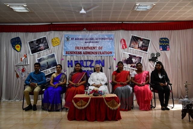 The BBA department of St.Agnes College (Autonomous), Mangalore organized an intra-departmental fest Horizon 2k19. The fest was inaugurated by the chief guest Sr. Dr M Jeswina A.C, Principal , St.Agnes College. Miss Aishwarya Shetty from III year BBA welcomed the gathering. Sr. Dr M Jeswina A C motivated the students and said ‘ It is necessary to take part in the extra-curricular activities.’and make us of the oppurtunities. Mrs.Sabina DSouza HOD and faculty members of BBA were present. Miss Tharannum of III year BBA delivered the vote of thanks and Miss Aysha Ashfiya compeered the programme. There were seven events conducted by the department such as Quiz, Sales Ad, Fabric Painting, Crisis Management, Video Making, Best Manager and Variety competition.