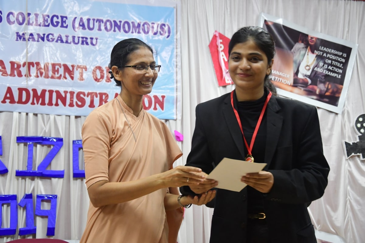 The fest concluded with a valedictory programme Sr. Dr M Venissa A C, Vice Principal, St.Agnes College was the chief guest. The winners were felicitated with medals and certificates. The students enthusiastically participated in all the events and the overall championship by bagged by III BBA students.