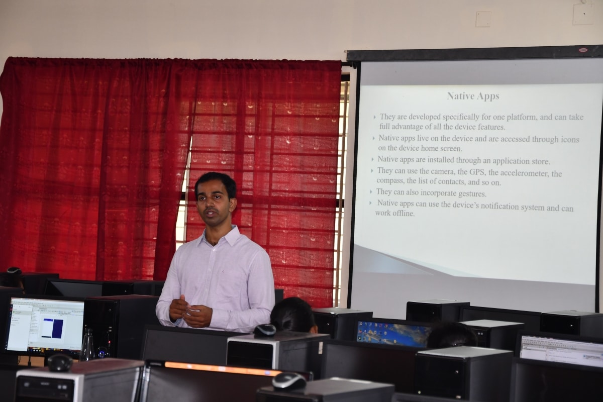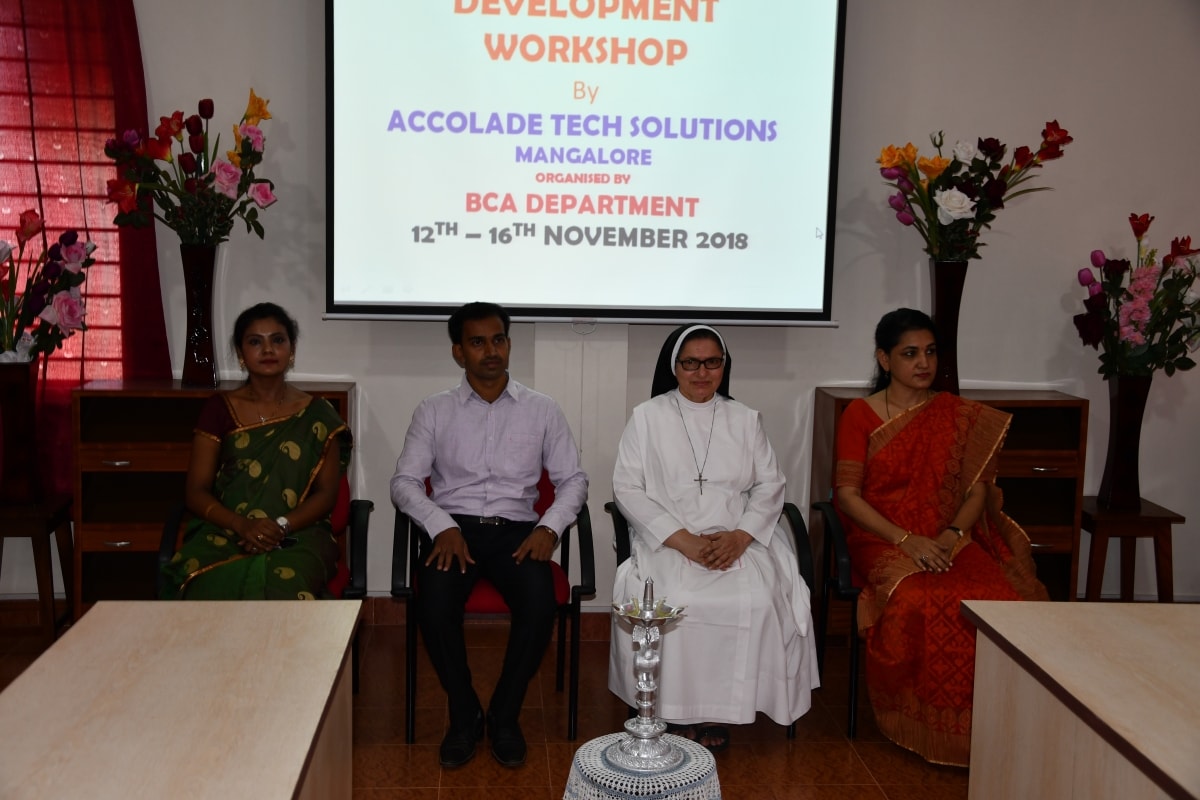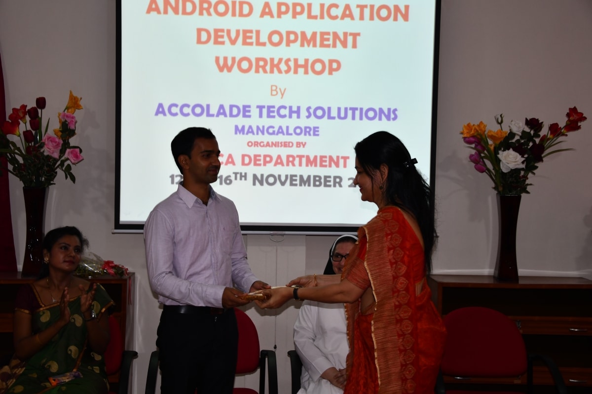 Mr Harish Neermarga, the chief guest, delivered the key note address by briefing up on the importance of Android Application Development and the essence of this workshop for students in the future. Sr Dr M Jeswina A C, appreciated the students enthusiasm for taking part in the workshop and wished them all the best. Mrs Malavika Shetty, Dean Administration; Mrs Anushree Raj, HOD Department of Computer Applications were also present for the workshop.Ms. Rakshitha welcomed the gathering; Ms. Saniya delivered the vote of thanks and Ms. Meghna anchored the inaugural function.