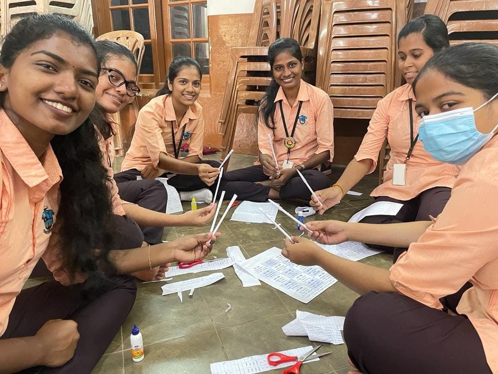 In the workshop he taught the students the technique of preparing a seed-pen with paper, glue, a ball-point refill and by adding seeds to make it more eco-friendly when it is discarded. Every student prepared a seed pen which were collected at the end and were categorized as the best, marginal and poor by Mr. Jayaprakash. The students who prepared the best were chosen for continuing the project.