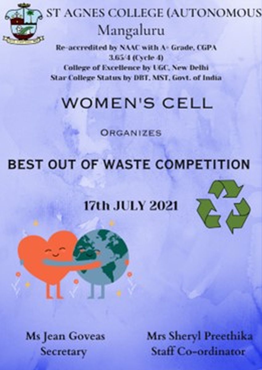 The Women’s Cell, St Agnes College organized Best Out of Waste competition for the members of ECA on 17 July 2021. 20 students participated in this competition.