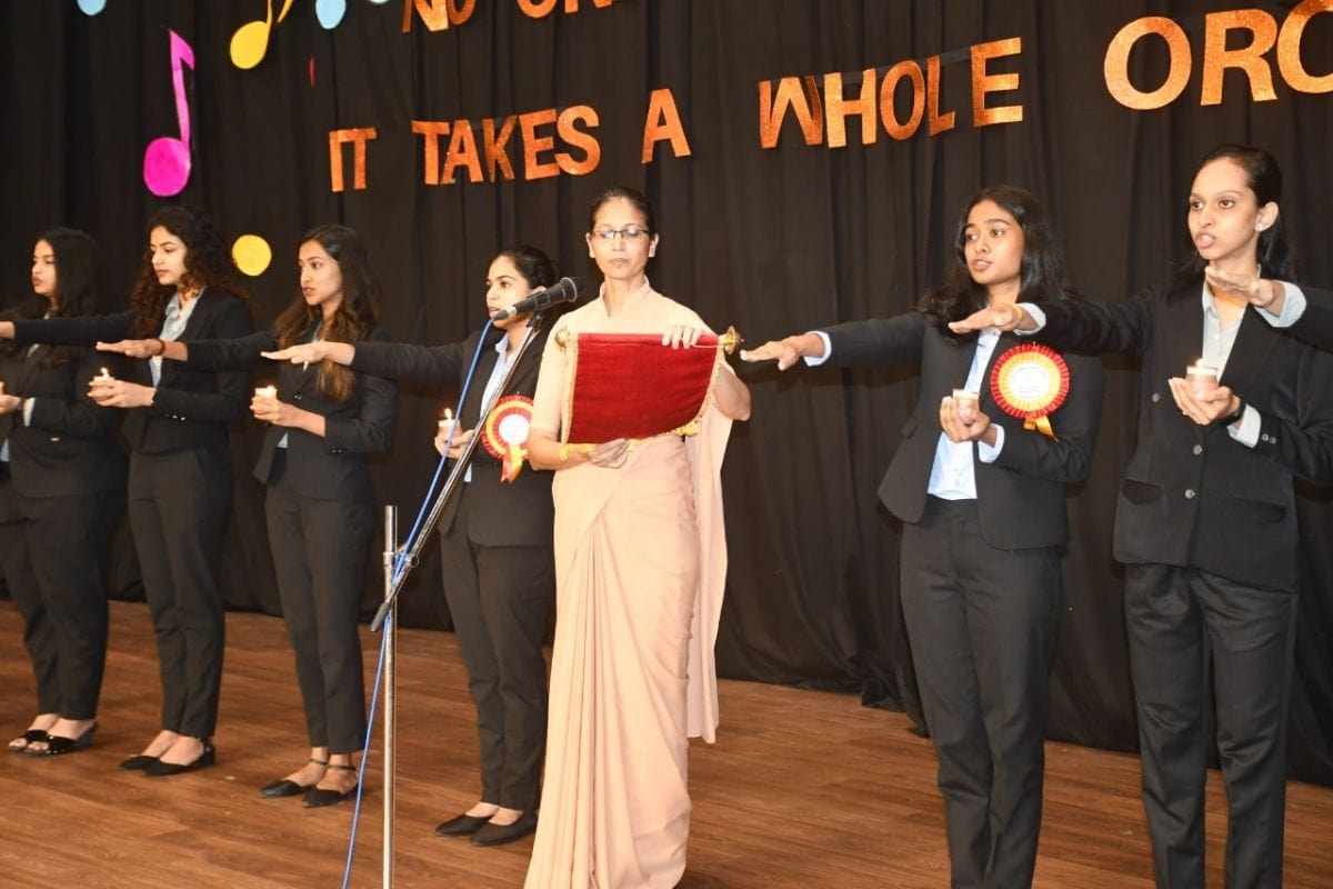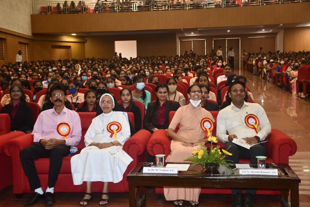 In the backdrop of administering oath to 32 student council members at Mother Mary Aloysia Centenary Auditorium, Chief Guest of the event City Police Commissioner N Shashi Kumar IPS acknowledged and appreciated the role of educational institutes in upliftment of women. He spoke against social evils such as Sati and the Dowry system. “Indeed more legislation is needed for curbing such anti-social practices. The empowerment of a woman happens only when she is financially independent. Therefore, so much more needs to be done for the education of girls,” he said.