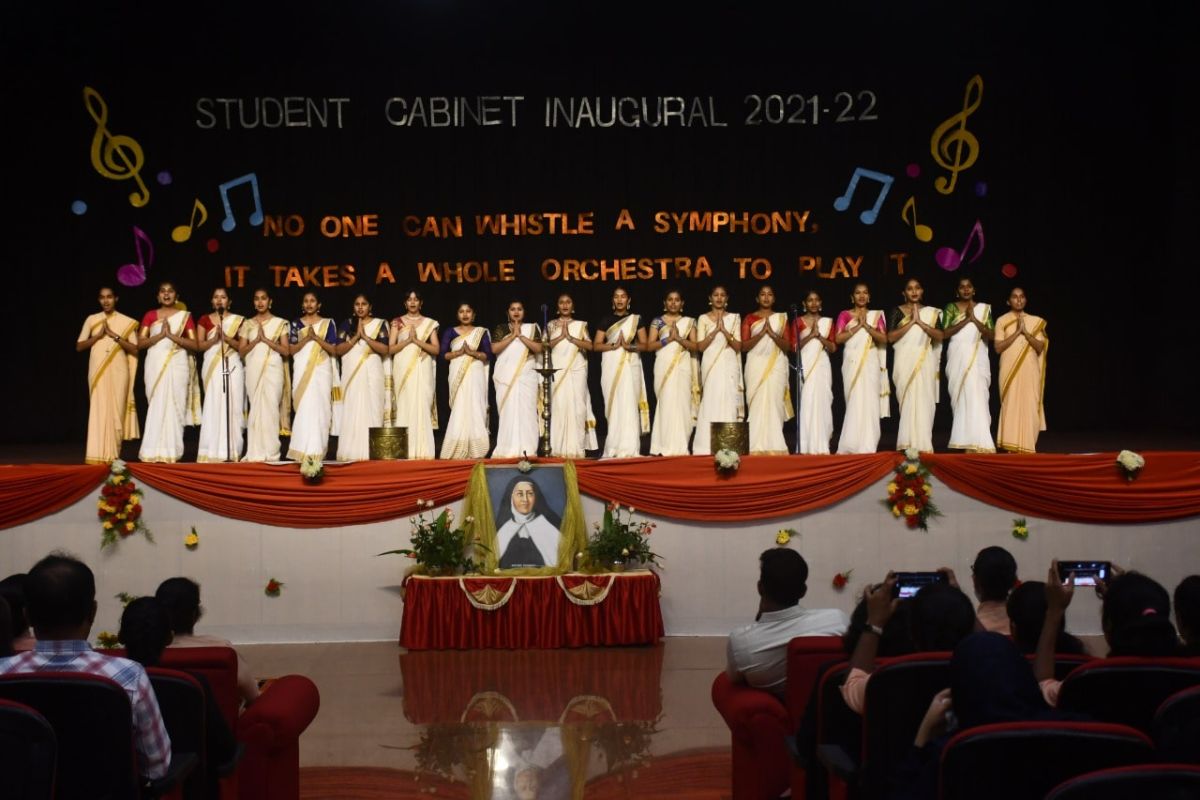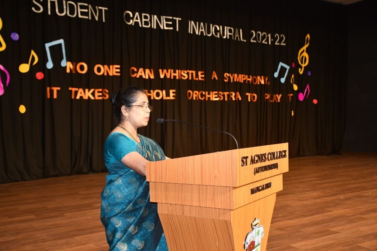 The student cabinet is a representational body of leaders at the student level. The Principal of St Agnes College, Sr Dr Venissa AC administered the oath to PG student president Sharon Bindu Shibu and UG Student President Rhea Lilia Sequeira who were accompanied by the other cabinet members.