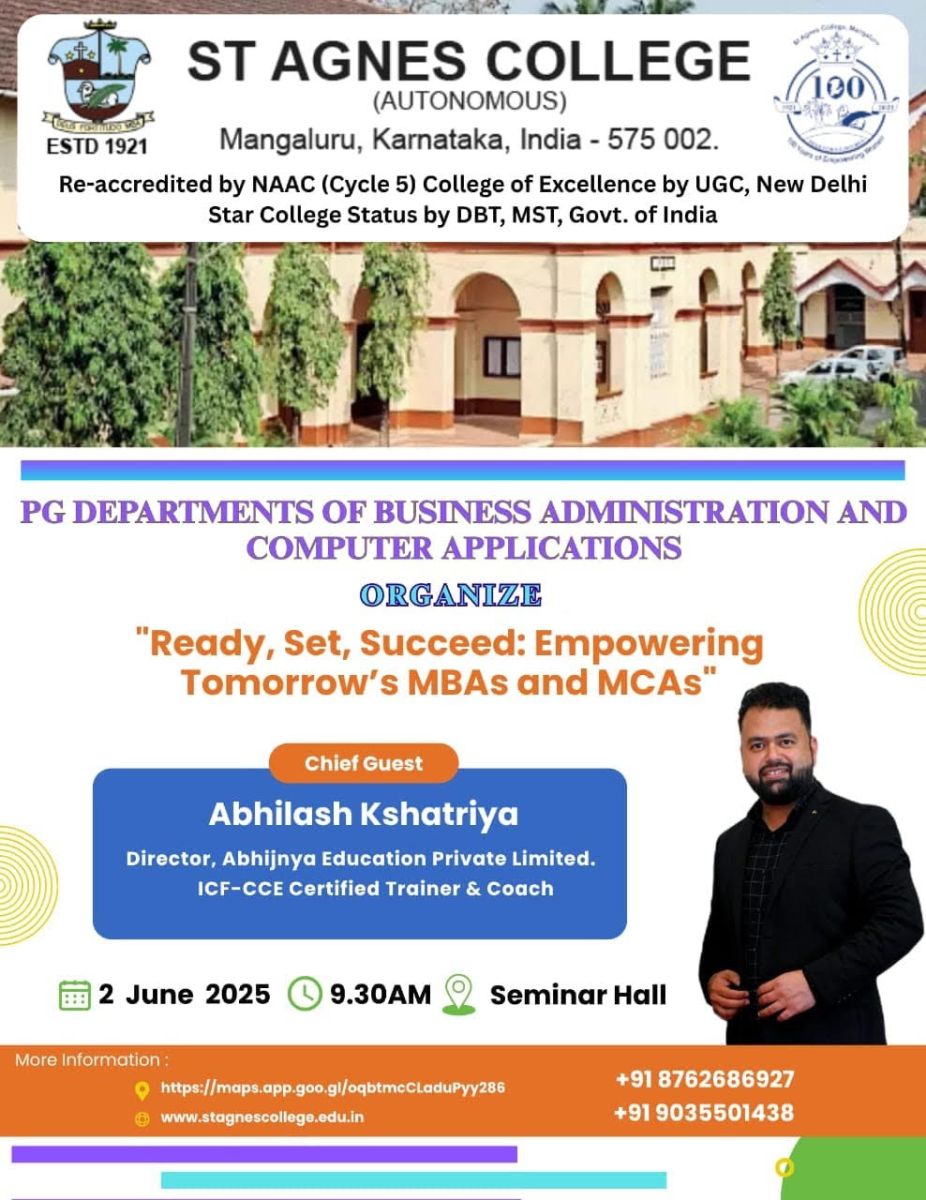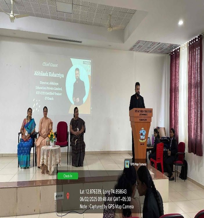 The programme began at 9:30 AM and was formally inaugurated by Mr. Abhilash Kshatriya, Director of Abhijinya Education Pvt. Ltd. and a certified coach, in the presence of the institution’s President, Sr Dr M Venessa AC, and PG Coordinator Sr M Vinora AC. Mr. Abhilash delivered an inspiring address based on the theme “IMPROVE,” highlighting the importance of personal growth and preparation strategies. As a token of appreciation, Sr M Vinora AC presented a memento to Mr. Abhilash. The inaugural function concluded with a vote of thanks by Dr. Mallika Shetty.