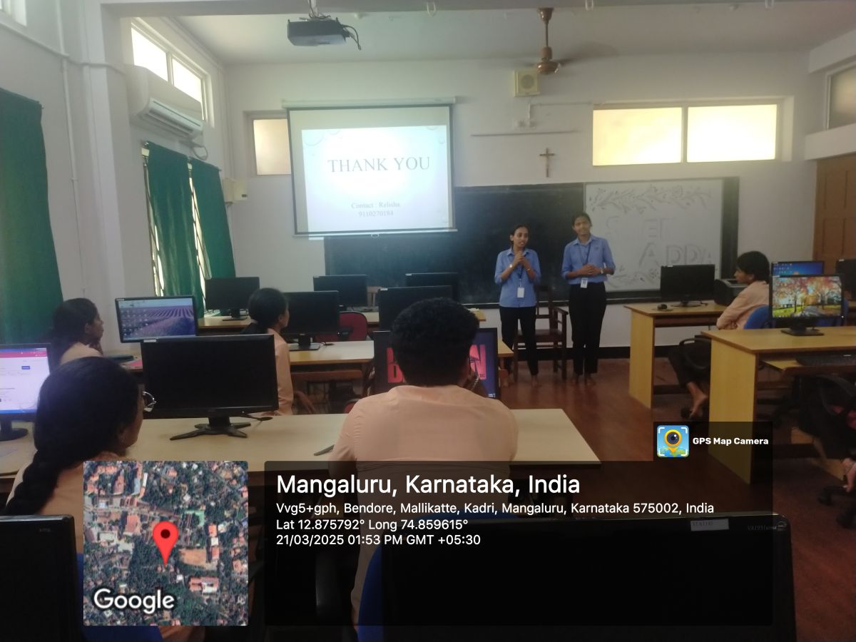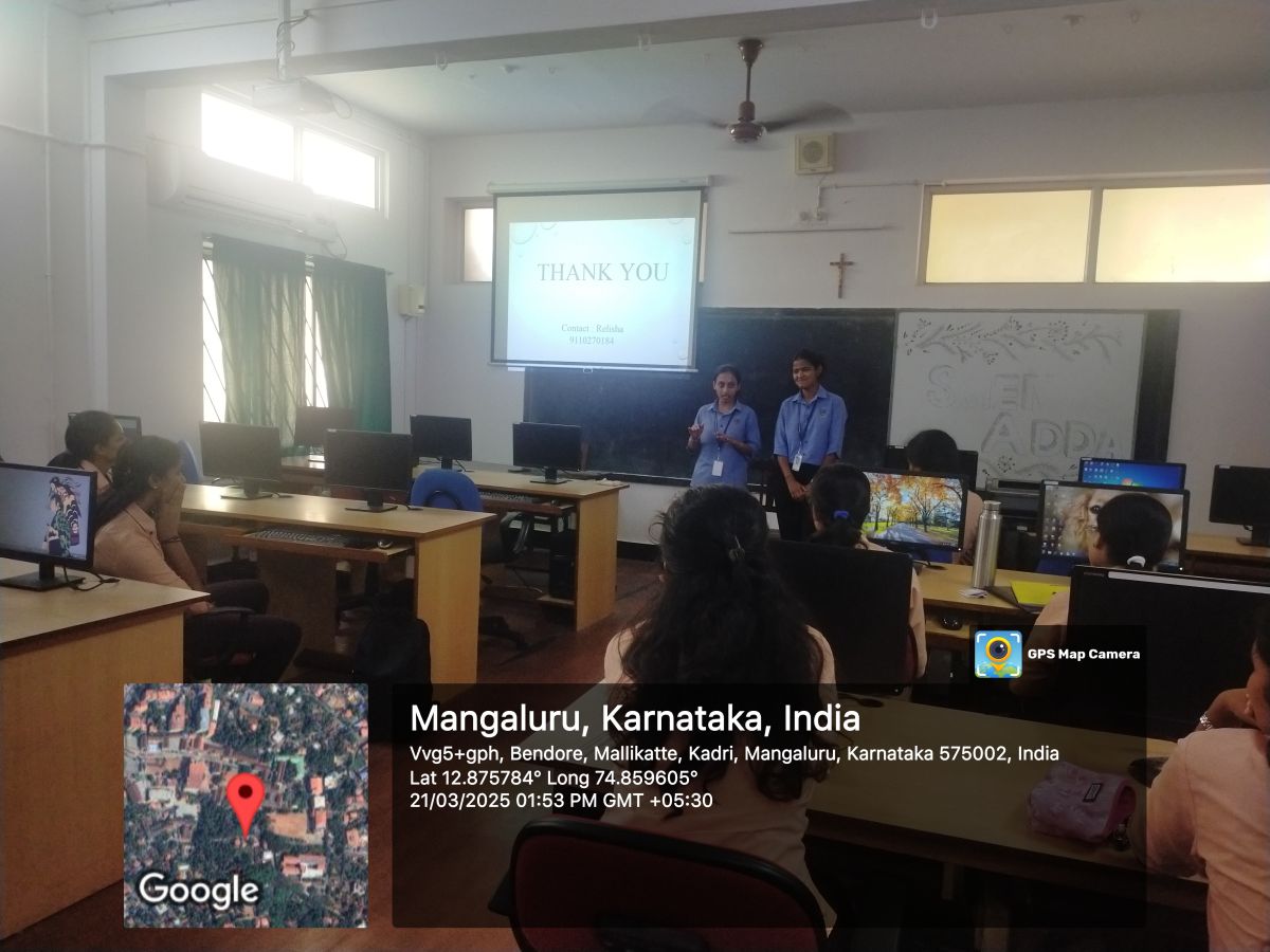 On 21st March 2025, the Department of Computer Science at St Agnes College (Autonomous) organized a career guidance session titled “Big Data, Bigger Opportunities” for final-year BSc Computer Science students. Ms Relisha D’Souza, Assistant Professor in the Department of Big Data Analytics, St Agnes College (Autonomous) served as the resource person.
