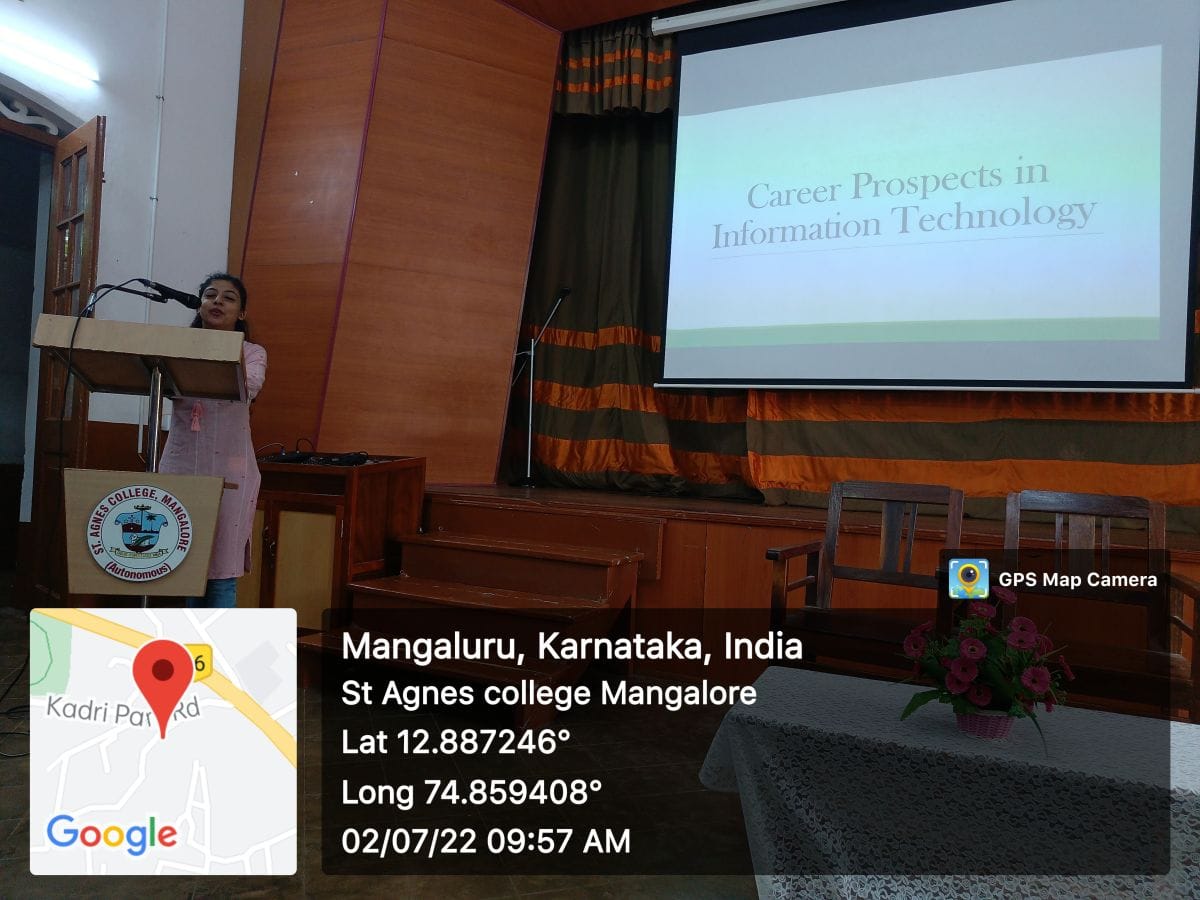 The Department of Computer Applications organized a session on ‘Career Prospects in IT’ on the 2 July 2022. The guest speaker was Miss Preethi PS,Technical Recruiter at People Gamut HR Solutions, Mangalore.