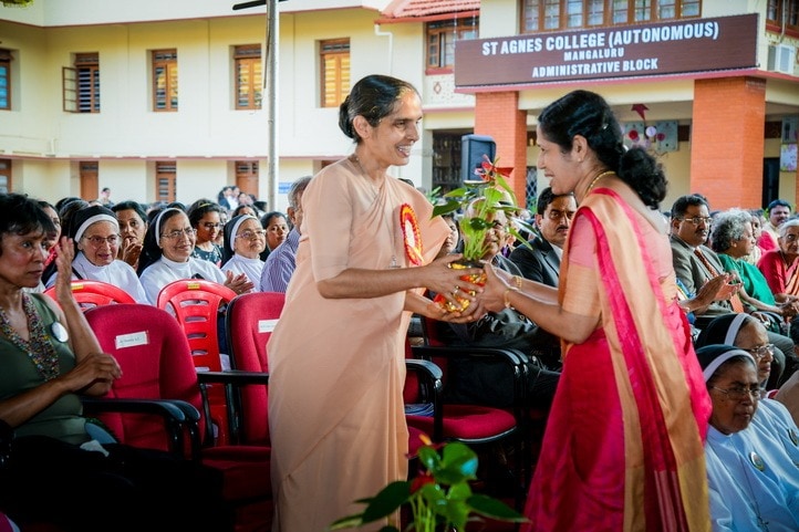 The evening of the day witnessed a meaningful programme where the benefactors and donors were honoured in the presence of eminent personalities who were present from far and near. The guests of honour , included Sri U T Khader, Sri Ivan D’souza; Sri J R Lobo; Ms Sindhu B Rupesh IAS; Dr P. S. Harsha IPS; Sri Anirudh Shravan, IAS (Commissioner, Collegiate Education) Mr. Michael D’Souza, MD, Ivory Grand Real Estate, UAE; Dr Brian Pinto, Former Senior Adviser, The World Bank Consultant-African Development Bank; Mrs Shabana & Mr Faizal, Chairpersons, KEF Holdings; Mr Leslie J Fernandes, Ex Chairman, Dockendale Shipping Co Ltd. Australia and Mr. Ronald Pinto, MD HYSSNA International, UAE. Rev. Sr. M. Susheela A.C in her address summed up the vision of the institution and offered her best wishes to all the stakeholders of the college. Ms Meera Rao (Director, Rambus Inc., USA) was the Chief Guest and in her address she recollected some of her fond memories of her student days and proudly claimed that the college is the firmament having a formative influence on the life of students allowing them to grow and succeed in life. Mangalore University Vice Chancellor Professor P S Yadapadithaya said that St Agnes College is famed for its quality of education and stands out among other institutions. The alumnae of this college have reached great heights. Among the other prominent speakers were MLA U.T. Khader.