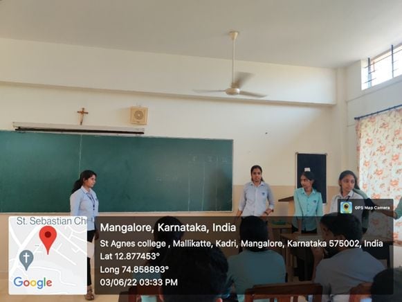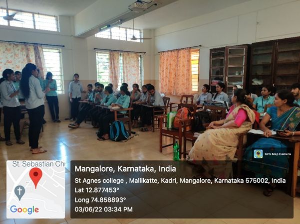 ‘CHEM AURA’ an Association of the Post Graduate Department of Chemistry, St Agnes College (Autonomous), Mangaluru on 3 June 2022 organized two activities named ‘ELEMENT’ and ‘CHEMIST. In the first activity, the participating team had to guess the name of the element in the periodic table. With each wrong prediction of the periodic table element and letters, each letter in the term ‘element’ would be struck off which meant participants would get 7 chances to make an error and also had to predict an element by 30 seconds. Totally there were 5 rounds and each team had to predict the element. The other activity was similar to ‘bingo. Here each team had to arrange 25 set of given periodic table elements across 5X5 square. Whichever team first struck off each and every element in 5 rows or columns horizontally or vertically 7 times would be the winner.