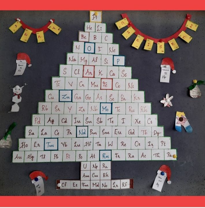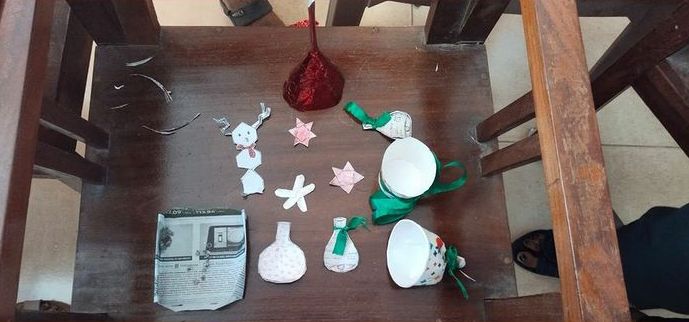 The Chem Aura Association, Department of Chemistry, Centre for Post Graduate Studies and Research, St Agnes College (Autonomous), Mangaluru had organized the ‘Chemistree’ (Christmas tree ornament making) competition on 22 December 2021. All students were divided into 5 groups named as Berkelium, Tennessine, Praseodymium, Samarium & Dysprosium. The competition was won by the second team “Tennessine”.