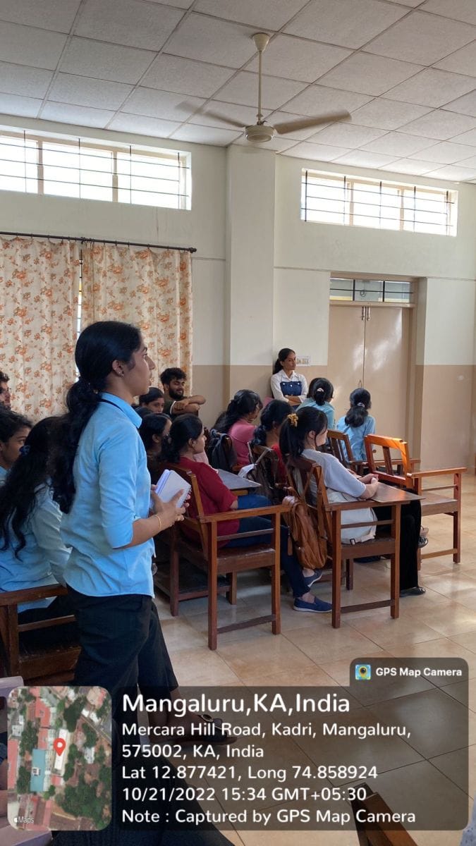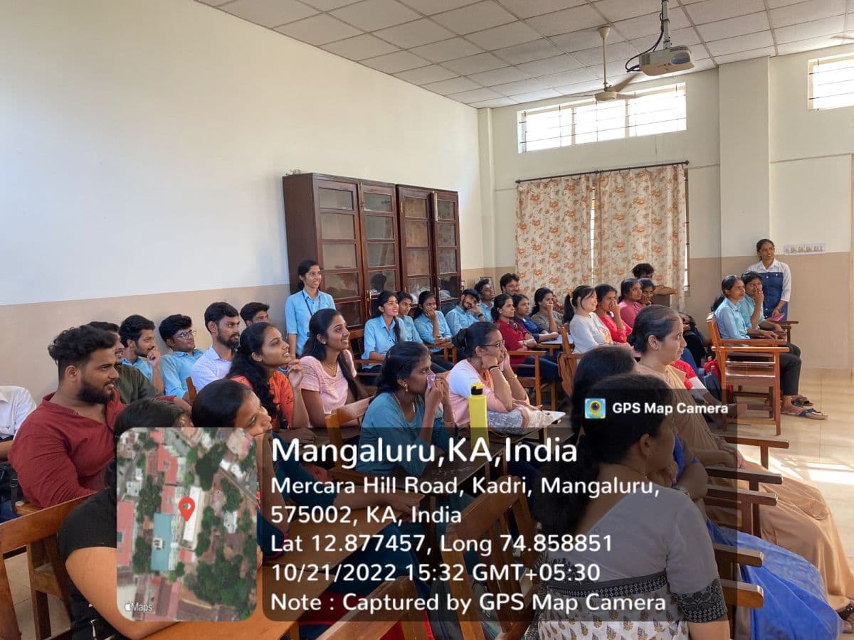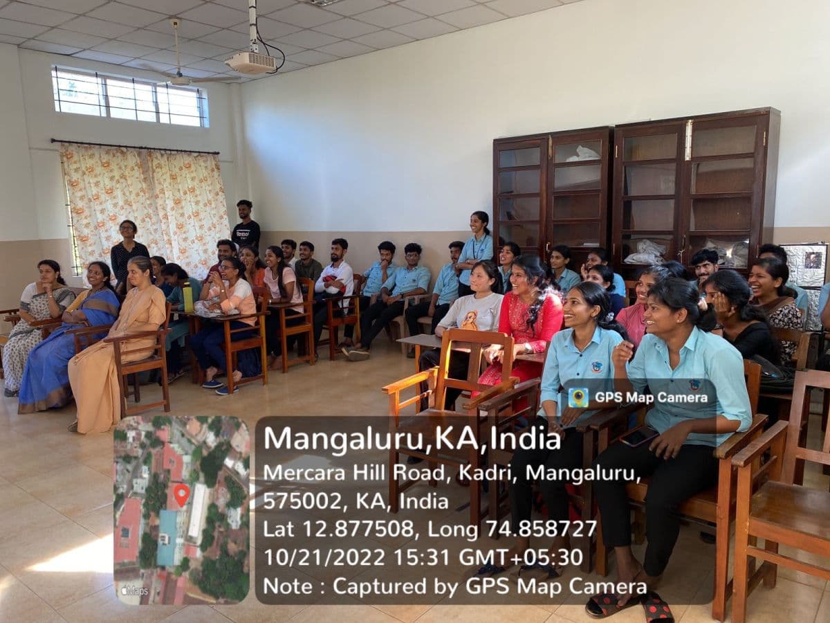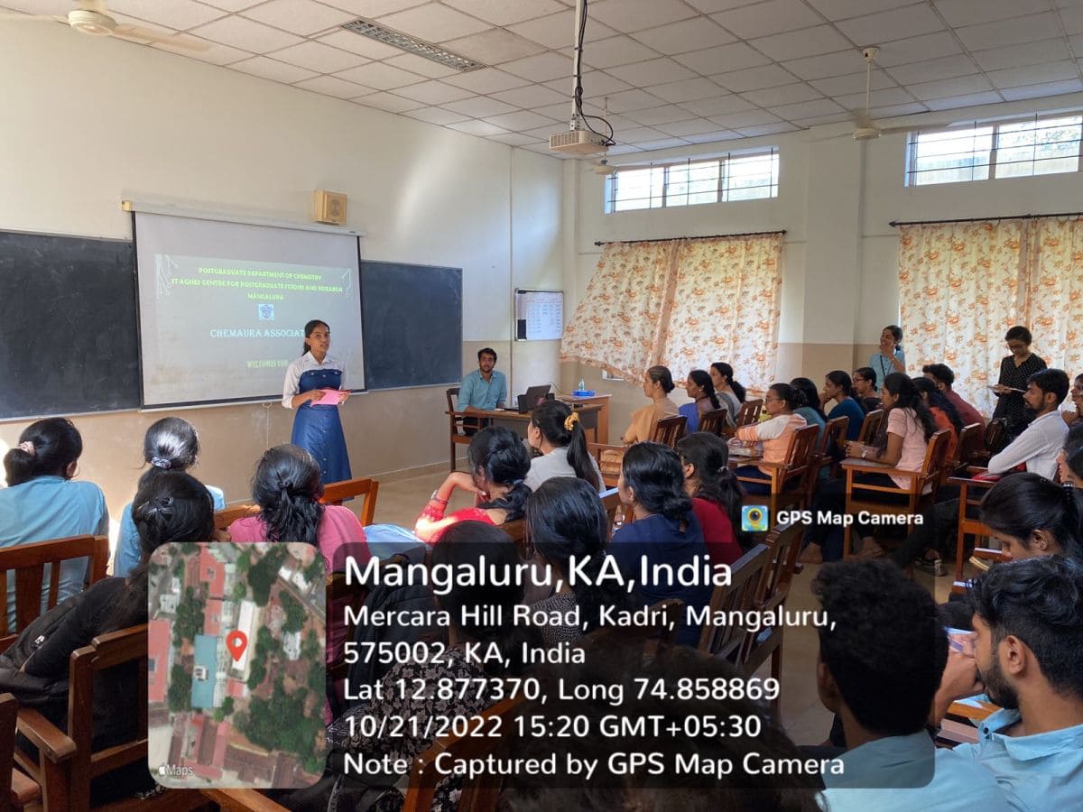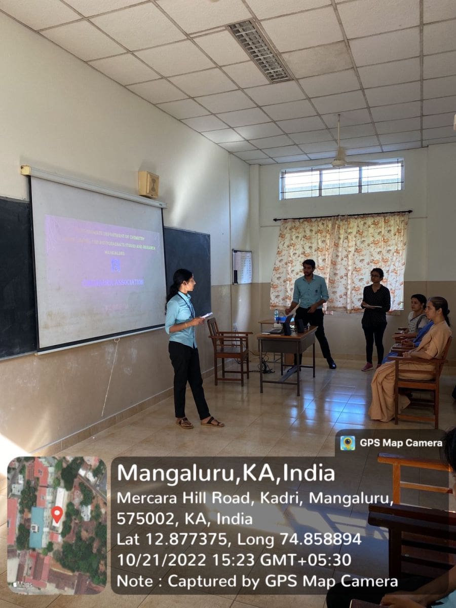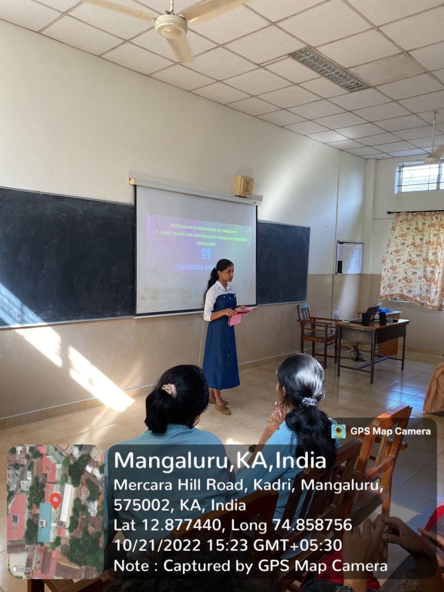 The Department of Chemistry, Centre for Post Graduate Studies and Research, St Agnes College (Autonomous), Mangaluru organized inaugural of ‘Chem Aura’ a Departmental association for the year 2022-23 on 21 October 2022. This was the first activity of the new academic year which was done in the presence of Dr Sapna Kumari M, Head of P.G. Department of Chemistry, Dr Likitha U, Chem Aura staff-incharge and Sr Gloria. The program was compered by Ms. Bhavya P from first year M.Sc. Chemistry. It was followed by a prayer led by Sr Tomsy and Ms Punya. Ms Navneetha, Chemaura Secretary from second year M.Sc. Chemistry gave the year plan for the academic year 2022-23 which was followed by the introduction of representatives and student incharges for this year. The interesting section of the day was the video making competition between the 5 groups. The videos were presented by each group which introduced their group name and group members. Each group came up with new ideas to introduce their group.