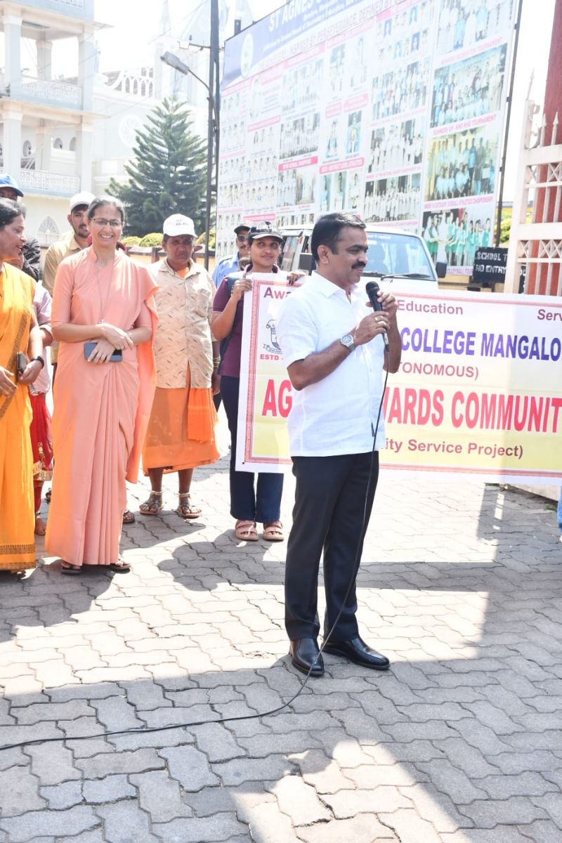 The drive was inaugurated by Mr Naveen D’Souza, Corporator, Mangalore City Corporation (MCC) near the college entrance gate. He appreciated this initiative taken up by the ATC group and encouraged students to be a part of more such service activities. He also requested the students’ co-operation in maintaining Mangalore, A Clean and Green City. The dignitaries present on the occasion included Sr Dr M Venissa AC, the Principal, Sr Dr Roopa Rodrigues AC, the Vice Principal and Sr Dr Vinora AC, the PG Coordinator, Dr Shailaja Rai, the ATC Coordinator. The programme was compered by Khateeja Nada of III BA.