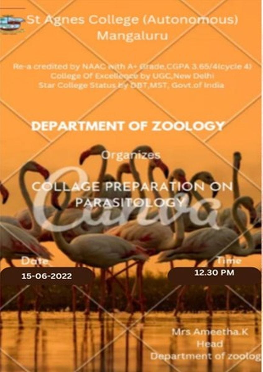 The Department of Zoology, St Agnes College (Autonomous), Mangaluru organized Collage competition on Parasitology on 15 June 2022. 10 students from I B.Sc. participated in the collage competition.