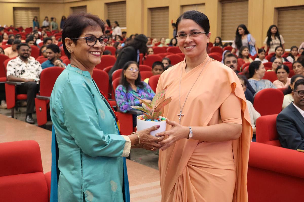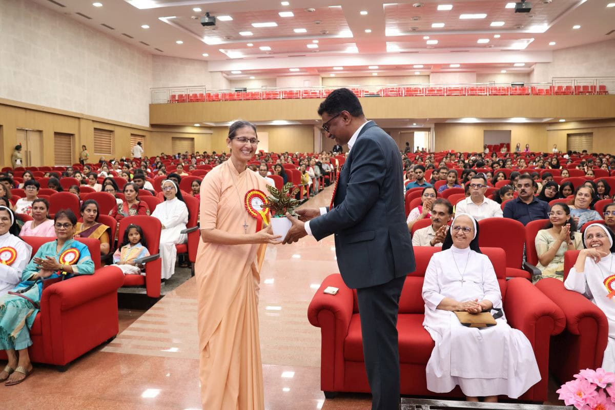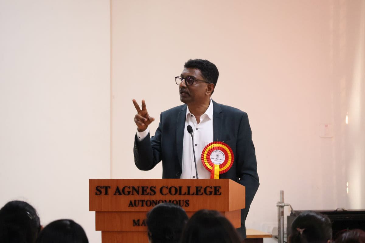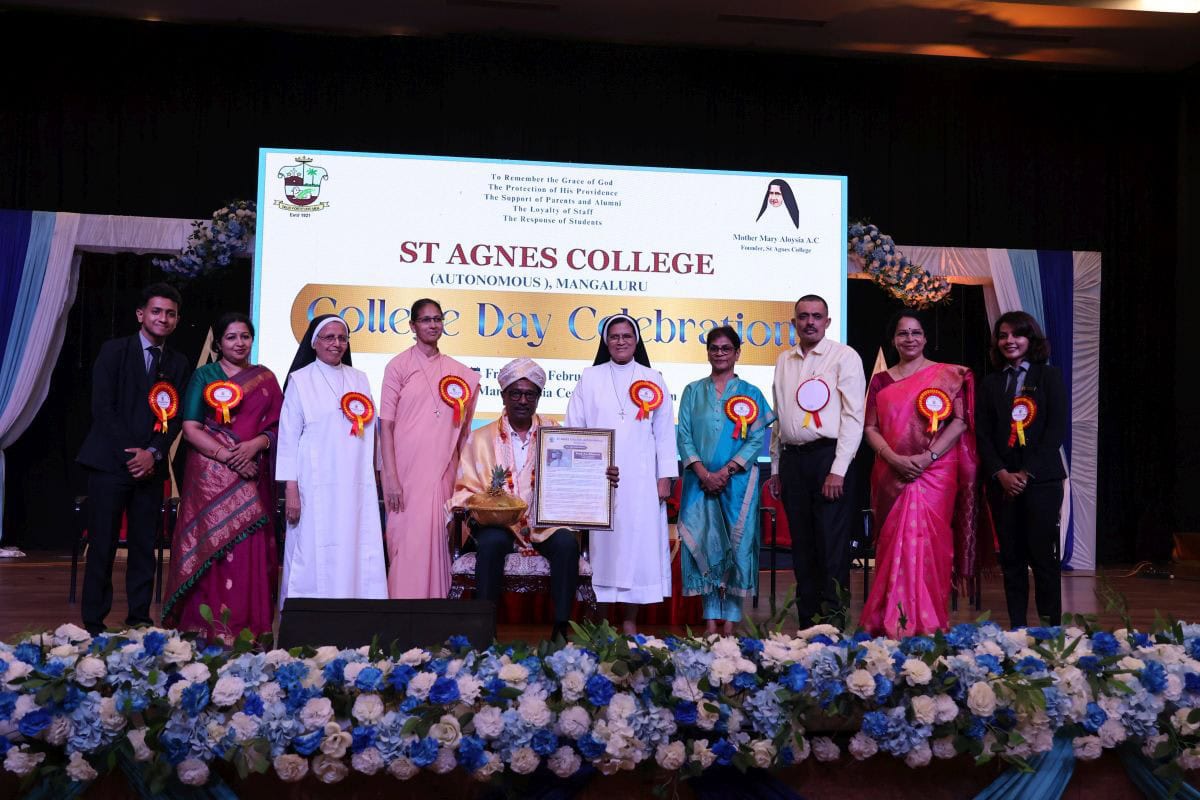 In his address, Prof. Dharma extended heartfelt congratulations to the students and faculty for their unwavering commitment to excellence. He emphasized the importance of nurturing a diverse educational environment that fosters inclusivity and innovation. Expressing happiness and gratitude for the hard work and dedication put up by the parents and teachers. Prof Dharma spoke about the history of St Agnes, the rich heritage, spirit and culture this institution carries over more than a century. He acknowledged all the teachers and this institution for their contribution to the immense growth of the students. St Agnes has always been socially rooted and has implemented this in their student’s growth. He highlighted the critical role of education in shaping a harmonious society, urging students to embrace their unique identities while contributing to the collective good. Prof Dharma was felicitated by the management of St Agnes College.