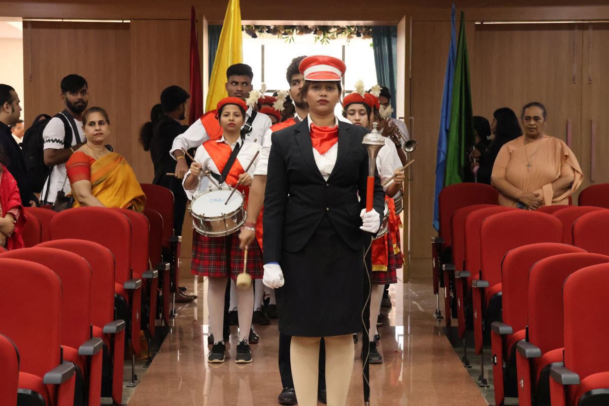 The formal stage program commenced with a splendid Guard of Honour, followed by a captivating Invocation, a vibrant Welcome Dance, a stunning Kannada Tableau, an exhilarating Musical Mashup, a delightful English Comedy Show, and a mesmerizing Nritya Sangam performance, all of which set a celebratory tone for the day. In recognition of exemplary performances across various domains, the Principal’s Roll of Honour, Special Prizes, and Scholarships were awarded to deserving students. Additionally, the cabinet members of the current academic year received accolades for their outstanding contributions.