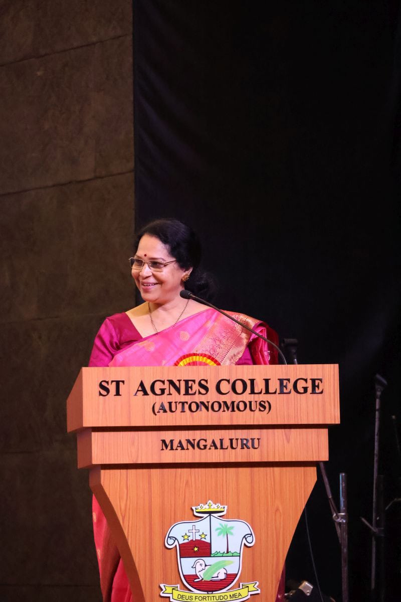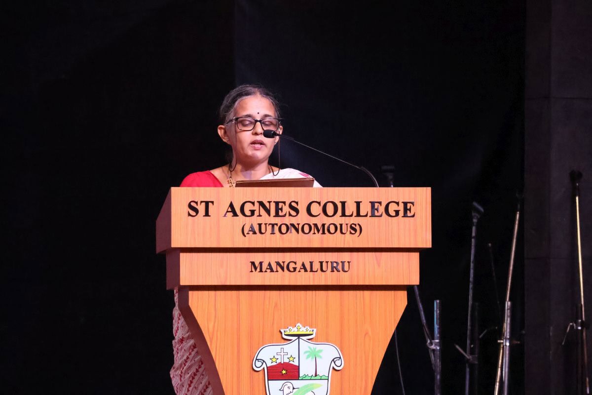 The function was presided over by Sr. Dr. Maria Roopa AC, the Joint Secretary of St Agnes Institutions. Other dignitaries present were Sr. Dr. M. Venissa AC, the Principal; Sr. Dr. Roopa Rodrigues AC, the Vice Principal; Sr. M. Carmelrita AC, the Administrator; Sr. Dr. M. Vinora AC, the PG Coordinator; Mrs. Subharekha, the Controller of Examinations; Dr. Sabina Lobo, the IQAC Coordinator; Management representatives, Mr. Ravi Bhat, the PTA Vice President; staff coordinators Dr. Devi Prabha Alva and Dr. Kavyashree K. B and student Presidents.