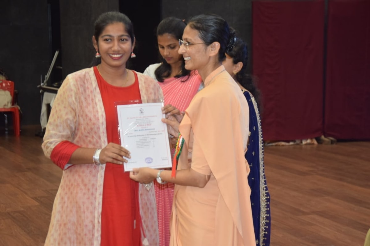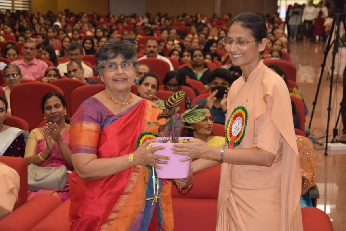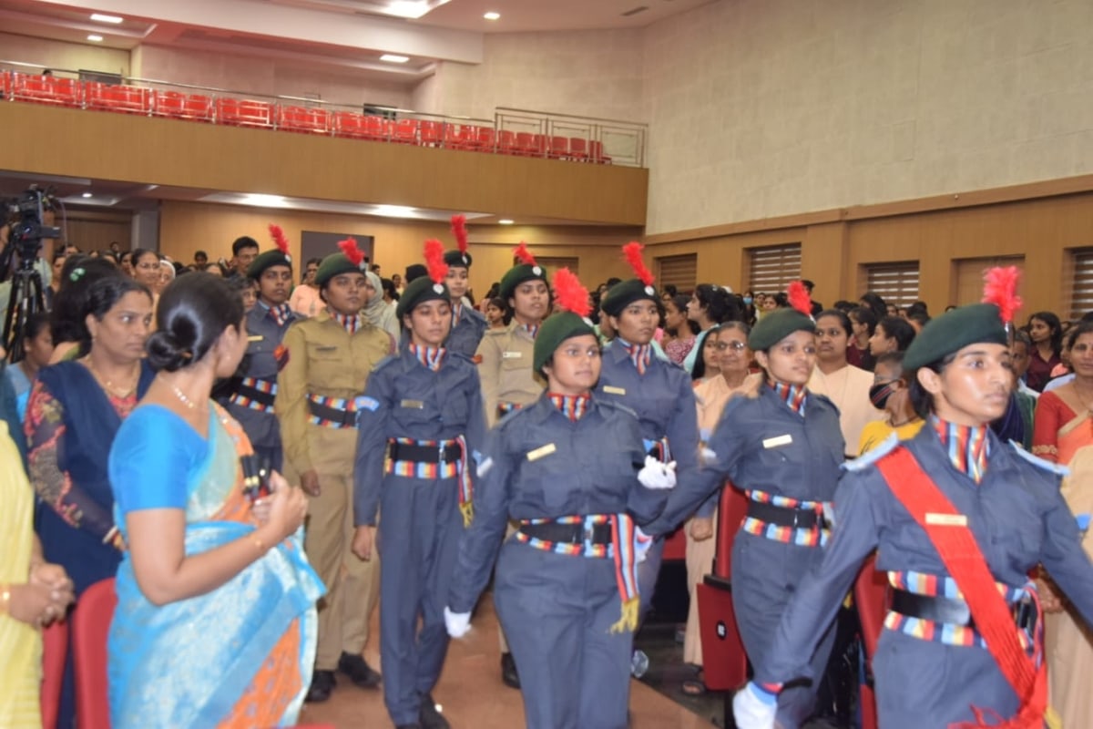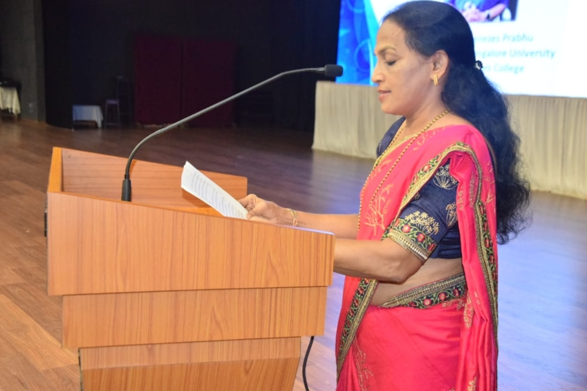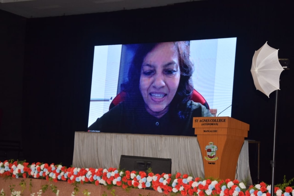 The programme began when the College band welcomed the dignitaries and accompanied them towards the stage. This was followed by a divine prayer song led by the College Choir. The programme was compered by Mrs Sandhya, Assistant Professor, Department of English, and followed by the welcome speech given by Dr Vishala. The programme was delightedly blessed with the meaningful words of the honourable Chief Guest Dr Cynthia Menezes Prabhu, Vice-Chancellor of Bangalore University and alumna of St Agnes College. She addressed the students and encouraged them to make the best use of their time at St Agnes College and grow upto be proud Agnesians.