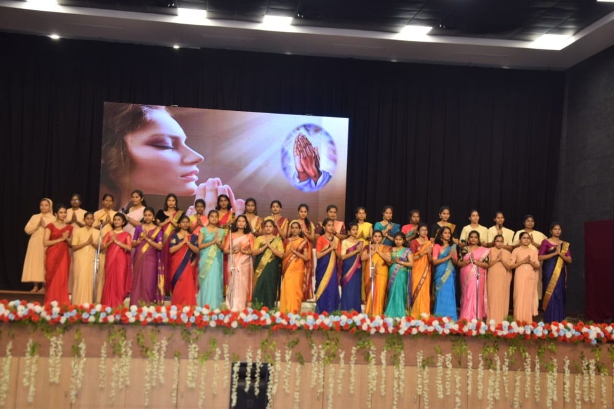 The cultural programme included singing of various melodious songs, enchanting dance performances and drama by the students showcasing their talent, skill and dedication. Being the light and salt of the earth, displaying strength in unity, respecting motherhood and appreciating different cultures were some of the themes portrayed through the different events of the cultural programme. The programme concluded with the vote of thanks given by Mrs Vinatha K, Associate Professor, Department of Psychology and with the singing of the college anthem.