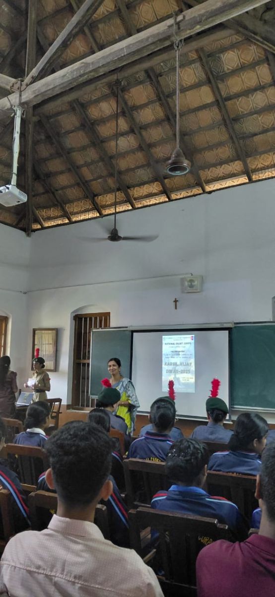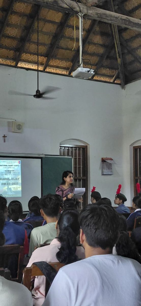 A short documentary video on the Kargil conflict was screened, providing insights into the heroic efforts and sacrifices made by soldiers. Programme was conducted under the guidance of Lt. Gayathri, ANO ,Army Wing, and Flying Officer Dr. Hithakshi, ANO, Air Wing who also shared inspiring words about the importance of patriotism and national security.