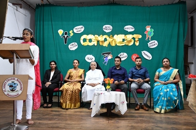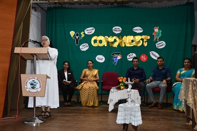 Dr. Sr. Jeswina A.C. the Principal of the college, Mrs. Anitha S, the in charge H.O.D of Commerce, Mrs. Sheryl P, the Dean of Commerce and Management, SAACSA coordinators Mr. Rodney Vaz and Mr. Delan Lobo, Asst. Professors of Commerce, Ms. Rakshika, the Vice-President of Commerce were the dignitaries during the inaugural.