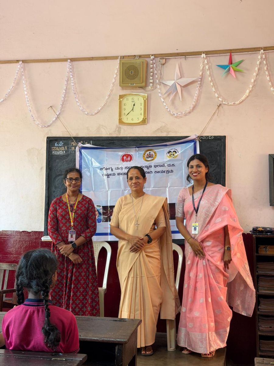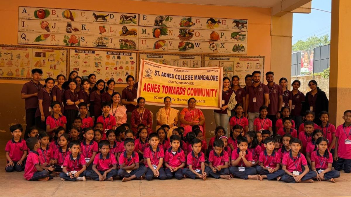 In addition to the elocution competition, the III BBA students of St. Agnes College conducted an interactive awareness session titled “Hygiene to Happiness” for the school children. The session focused on the importance of personal hygiene, healthy habits, and overall well-being in a child-friendly and engaging manner.