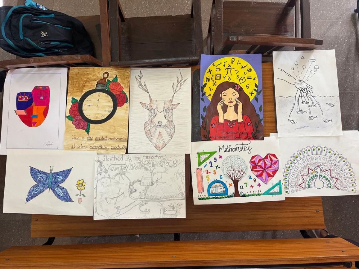 A total of 9 students from various streams participated in the competition, bringing creativity and originality to their work. Each participant skillfully incorporated mathematical symbols and signs into their artwork, showcasing how mathematics can transcend numbers and formulas to become a powerful medium of artistic expression.