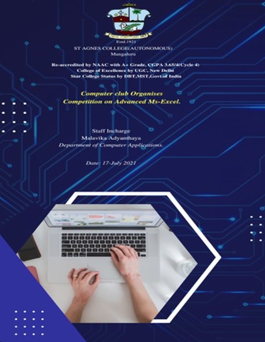 The Computer Club, St Agnes College (Autonomous), Mangaluru organized a competition on Advanced MS-Excel on 17 July 2021. 84 students participated in this competition. Students were divided into groups and questions were given to solve using MS Excel.