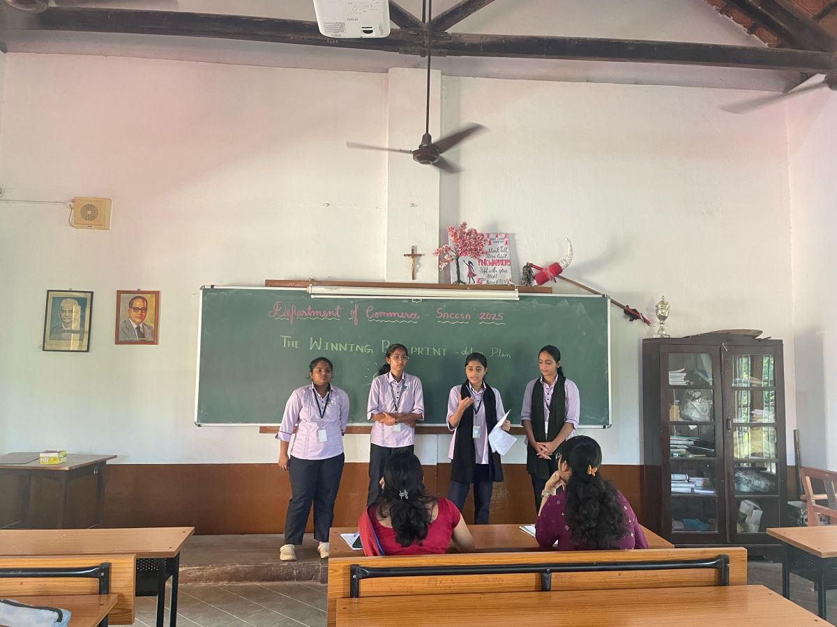 This case study competition tested the analytical, problem-solving, and presentation abilities of students. Coordinated by Preemal Monis, Serena, Ivin, and Spoorthi from various BCom streams, the event saw participation from seven teams. Each team was given a case study to analyze and present solutions within five minutes, followed by a Q&A session. Judges Ms. Jennifer and Mrs. Merin evaluated the participants on their teamwork, analysis, and presentation. Calvisha Dsouza, S Navyashree, Archana Bhat, and Afra Abdul Khader (III BCom ACCA) bagged first place, and the second place went to Nabhan, Sweedal, Leston, and Pranjali (I BCom ACCA). Mementos were presented to the judges in appreciation of their efforts.