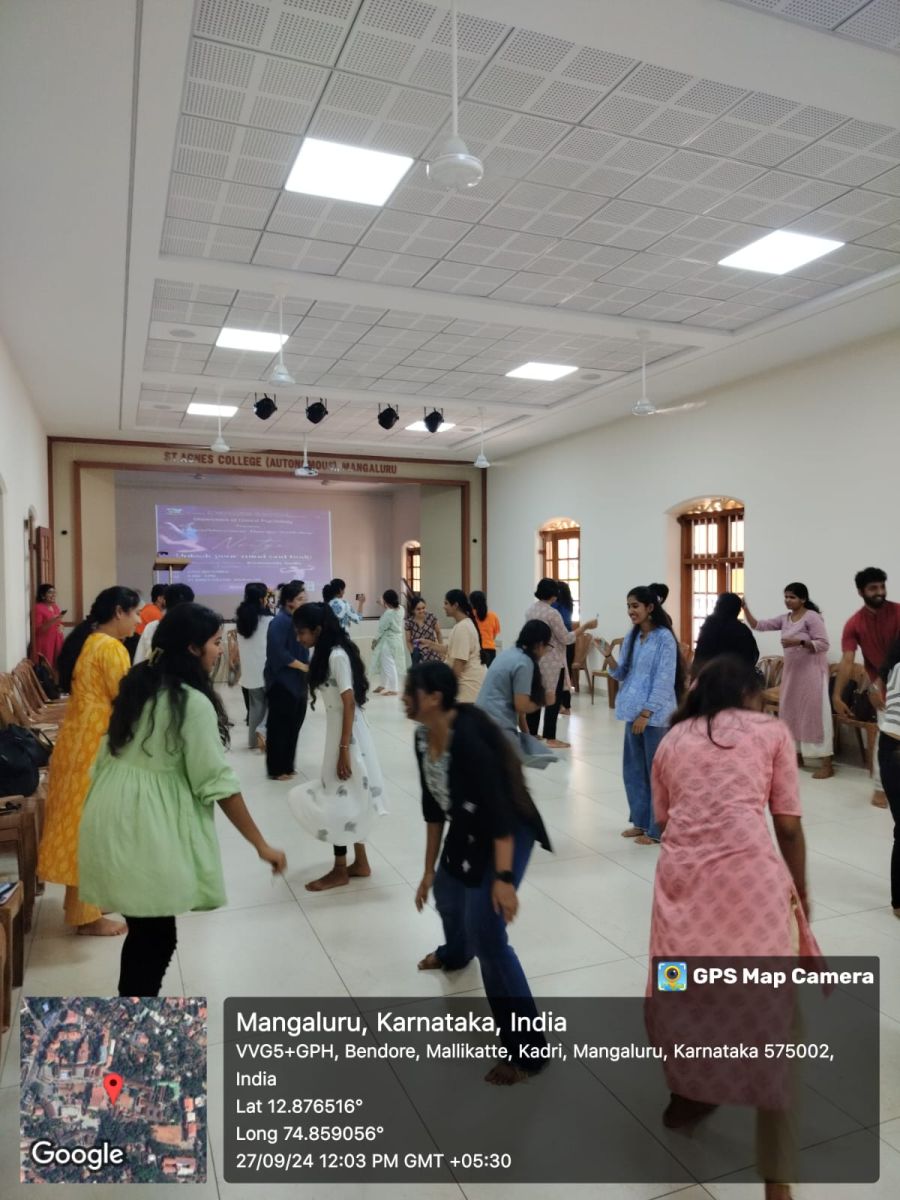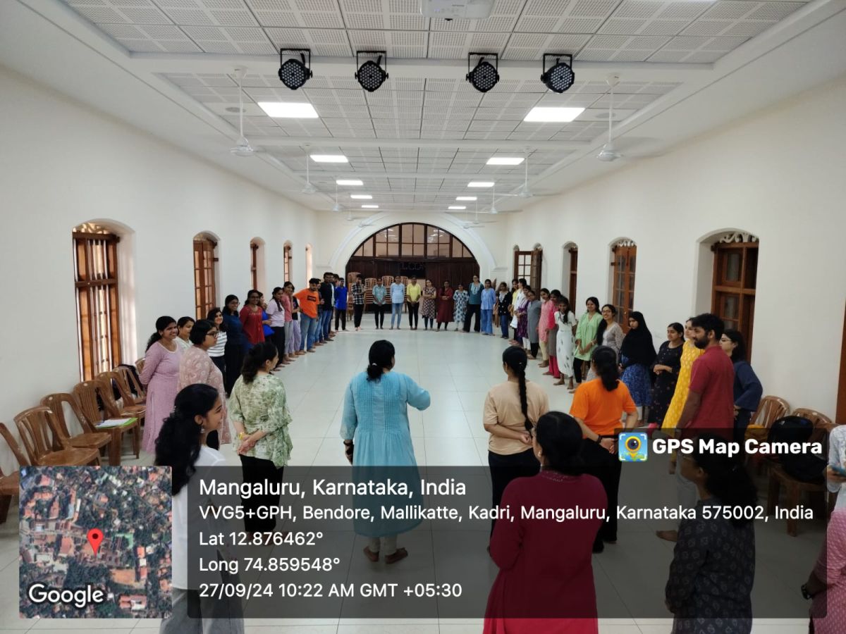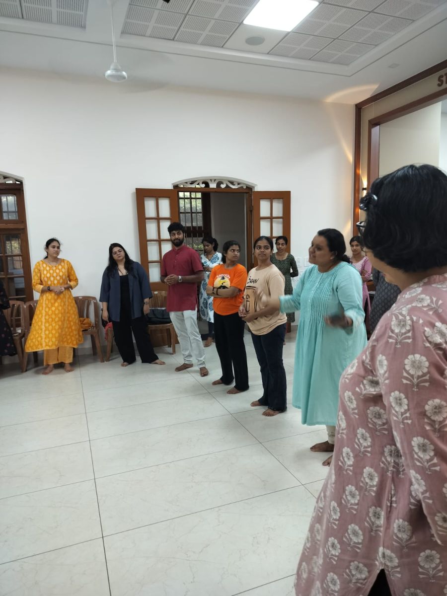 The session began with an introduction to the foundational principles of Dance/Movement Therapy, with Ms. Sudhi explaining how movement can be viewed as a form of communication. This was followed by hands-on activities where participantsexplored the therapeutic potential of dance and movement. Participants were encouraged to express their emotions, experiences, and internal processes through movement, helping them connect with their body’s sensations and feelings.
